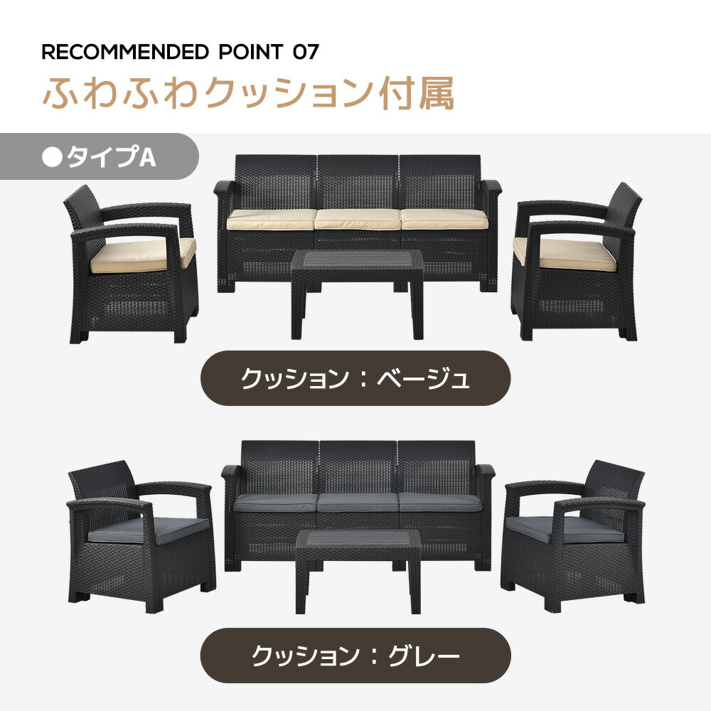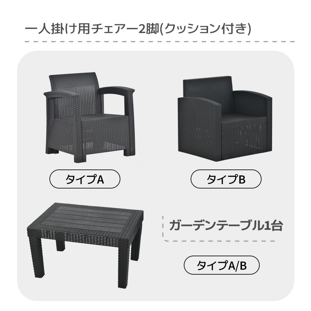 ガーデンテーブル ガーデンファニチャー タイプAークッション:グレー タイプAークッション:ベージュ タイプBークッション:ホワイト タイプBークッション:グレー