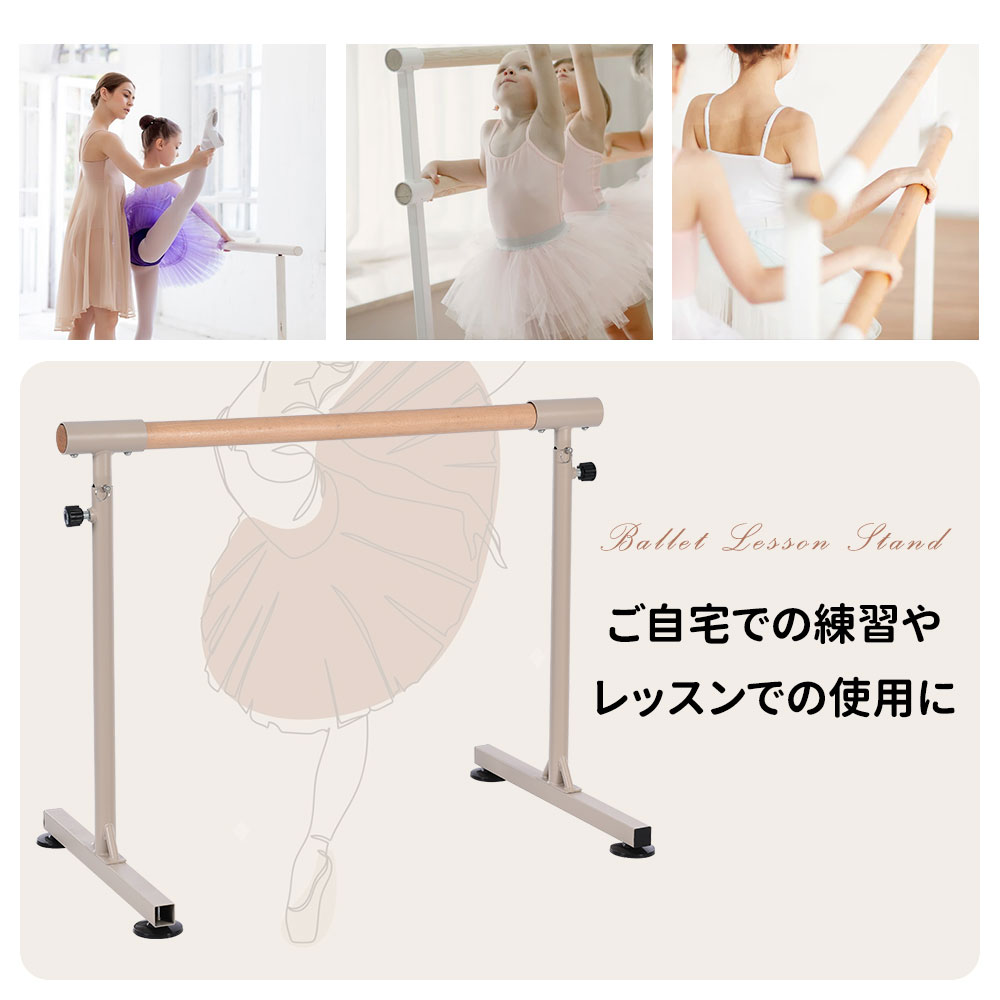 バレーバー スタンド バレエ バー レッスンバー 高さ調整可能 5段階 85cm 90cm 95cm 100cm 105cm 耐荷重100kg 天然木 室内 プレゼント レッスン 練習 クリス 手すり