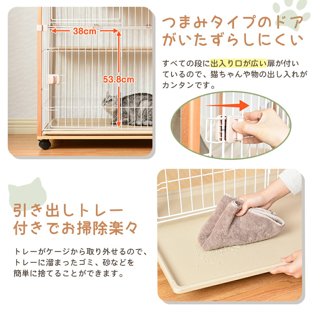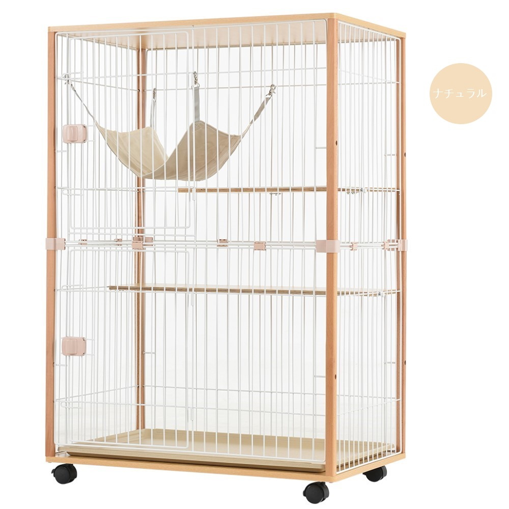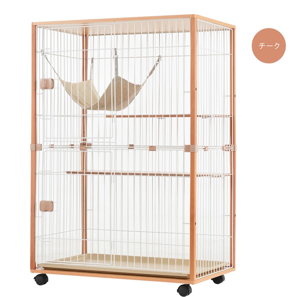 猫 ケージ キャットケージ 2段 木製 ペット ペットグッズ 通販 ナチュラル チーク色