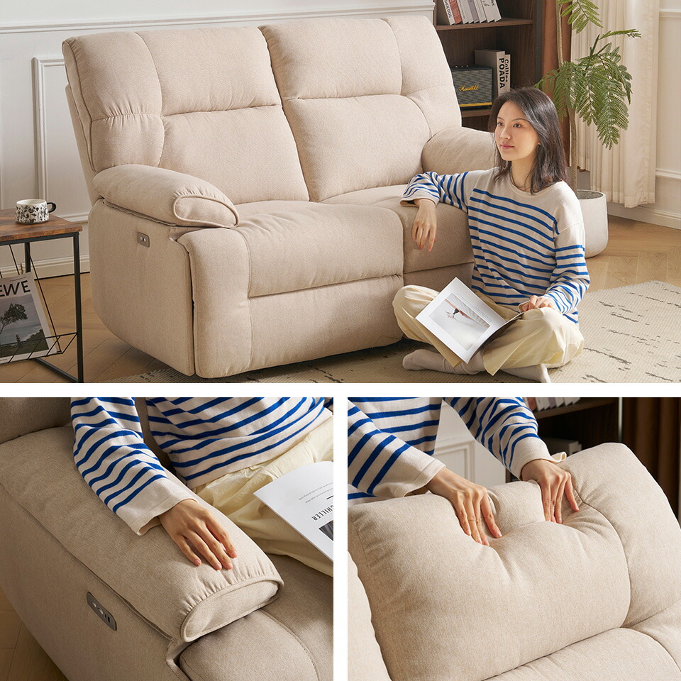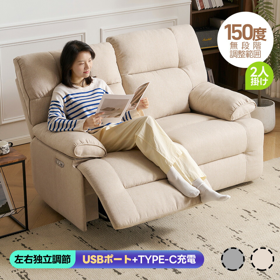 贅沢 リクライニングソファ 2人掛け ベージュ グレ―
