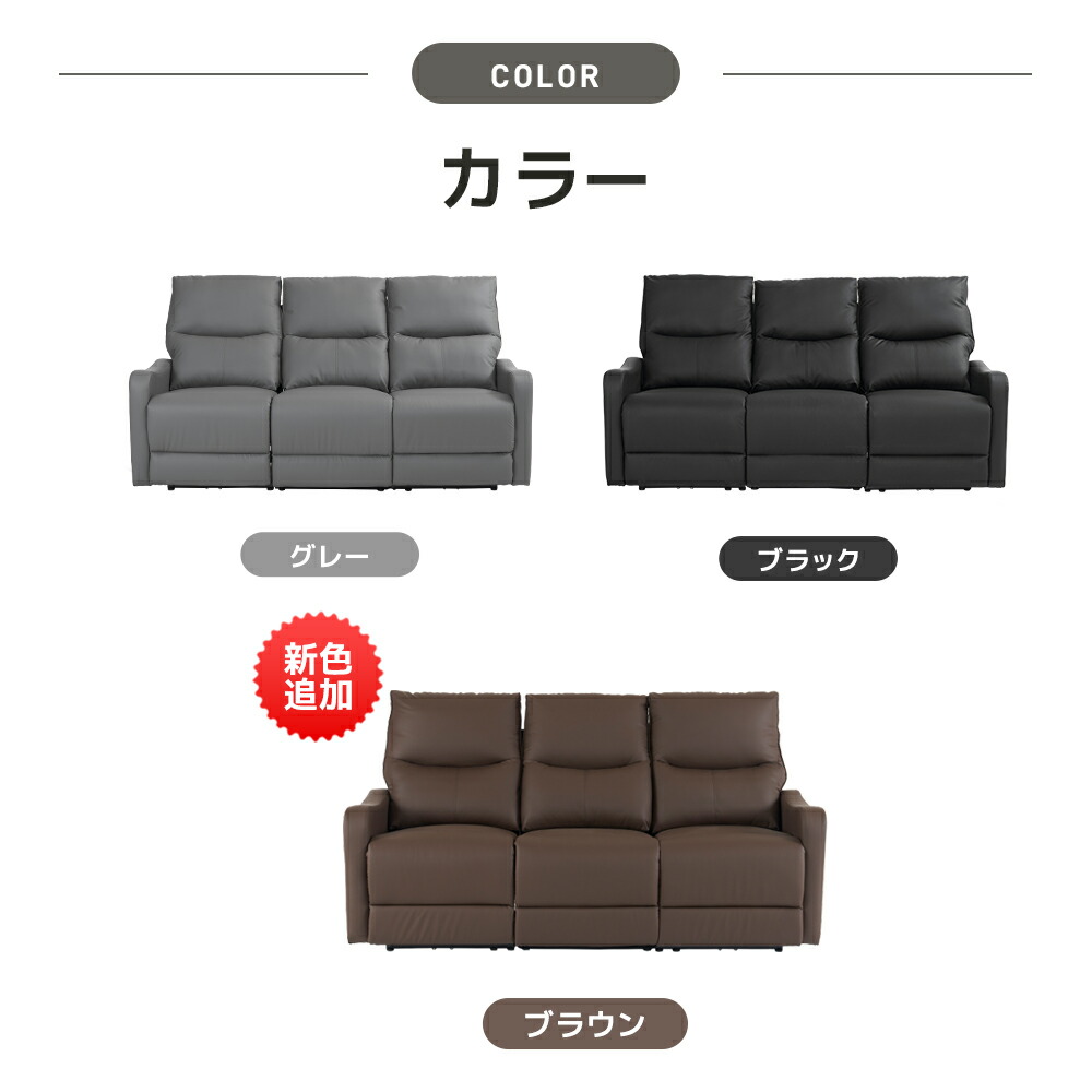 リクライニングソファ 3人掛け 電動 グレー ブラック ブラウン