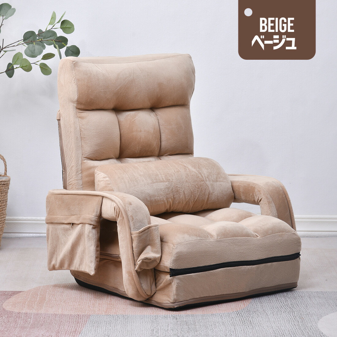 座椅子 42段階 肘掛け サイドポケッ ベージュ ブラウン ダークグレー ライトグレー グリーン ブルーグレー