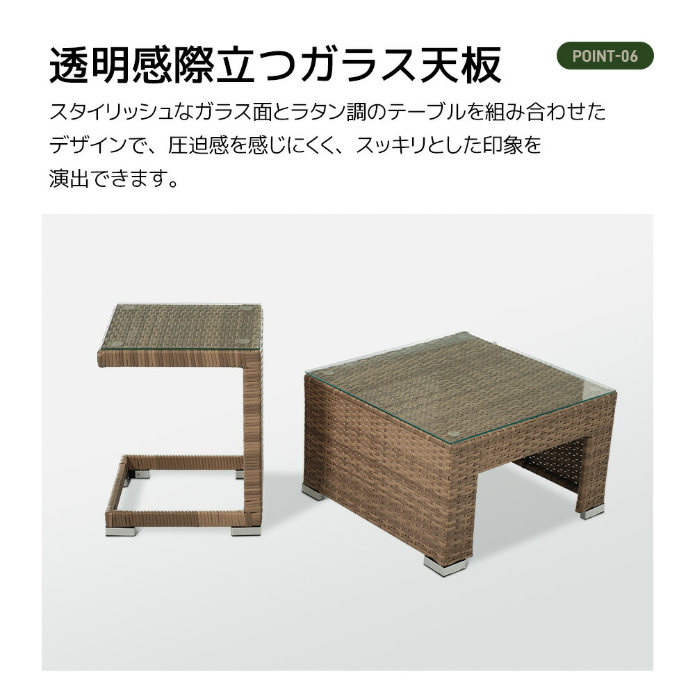 ◆【透明感際立つガラス天板】スタイリッシュなガラス面とラタン調のテーブルを組合せたデザインで、圧迫感を感じにくく、スッキリとした印象を演出できます。