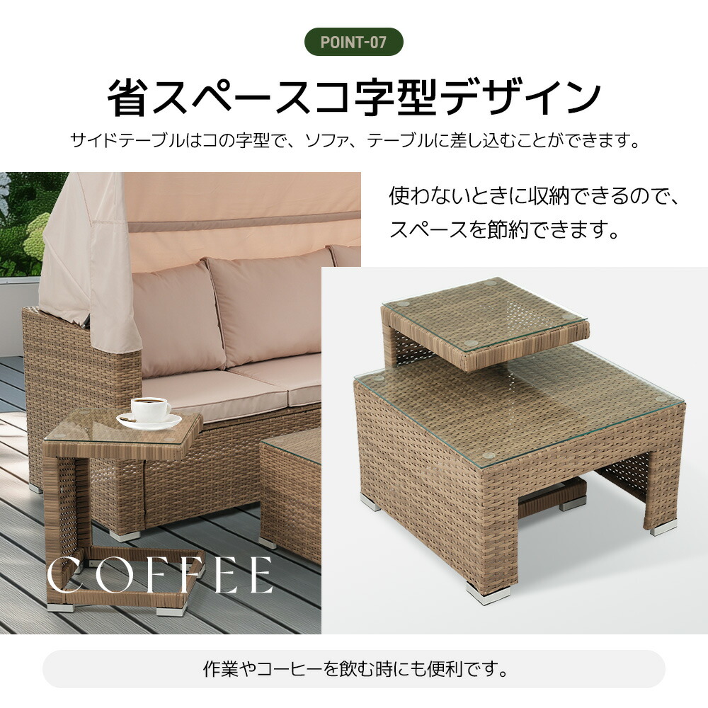 ◆【省スペースコ字型デザイン】サイドテーブルはコの字型で、ソファ、テーブルに差し込むことができます。使わないときに収納できるので、スペースを節約できます。