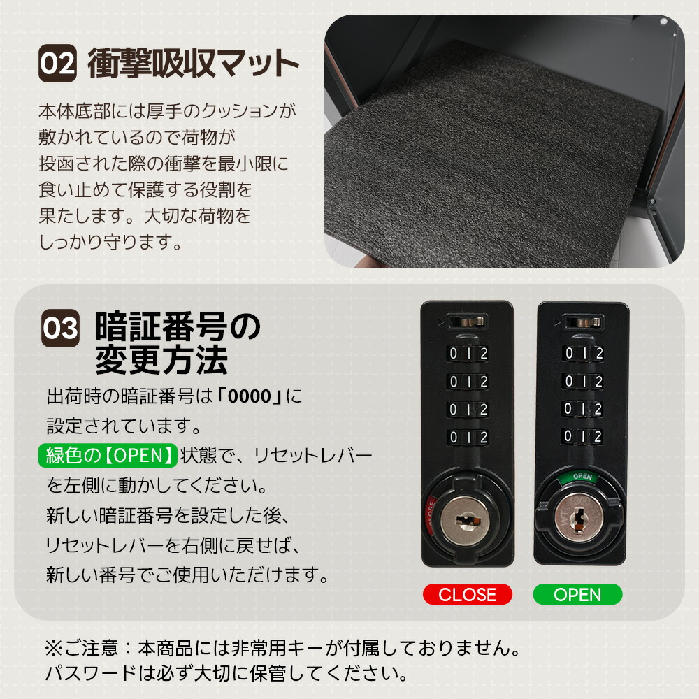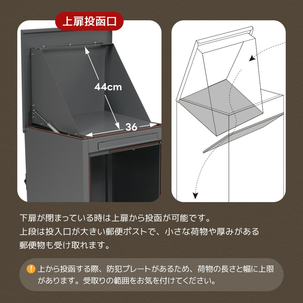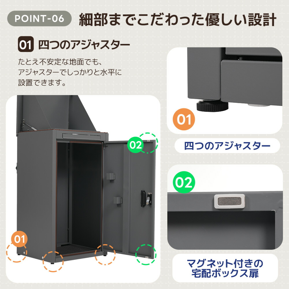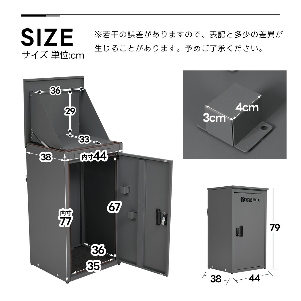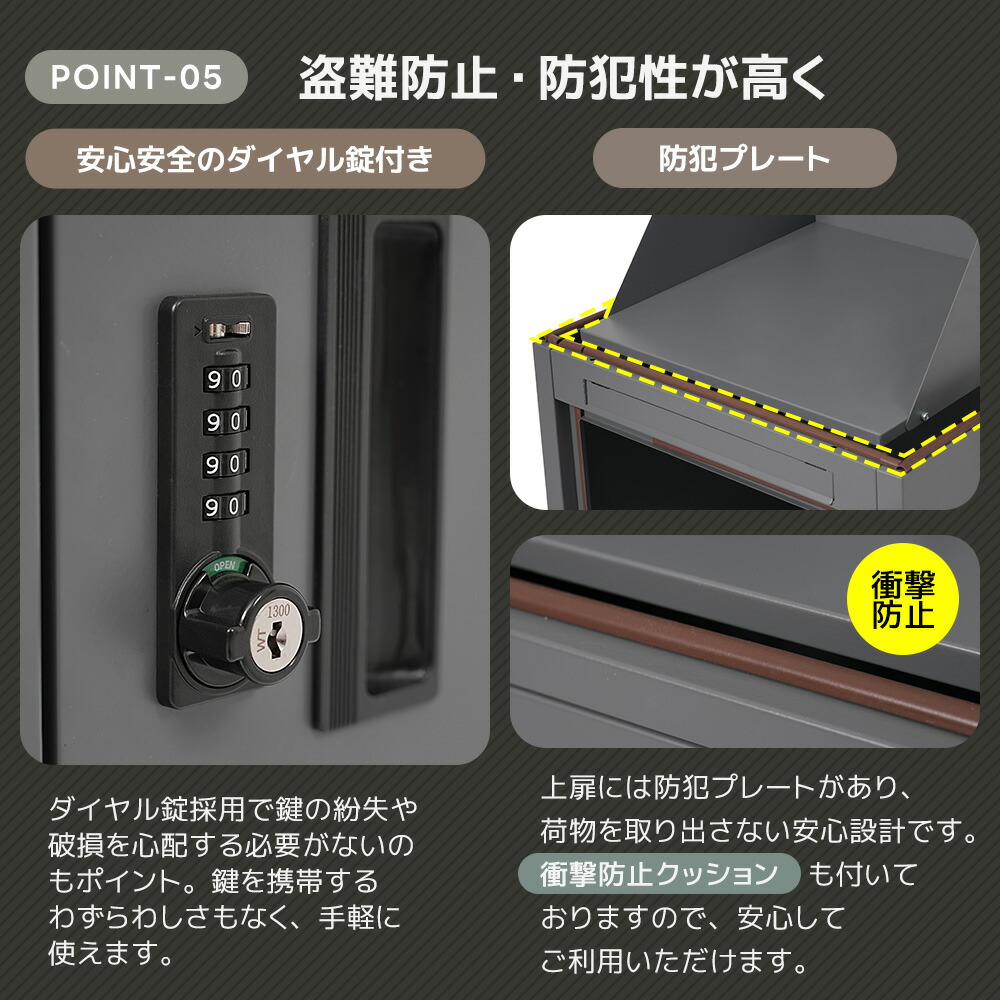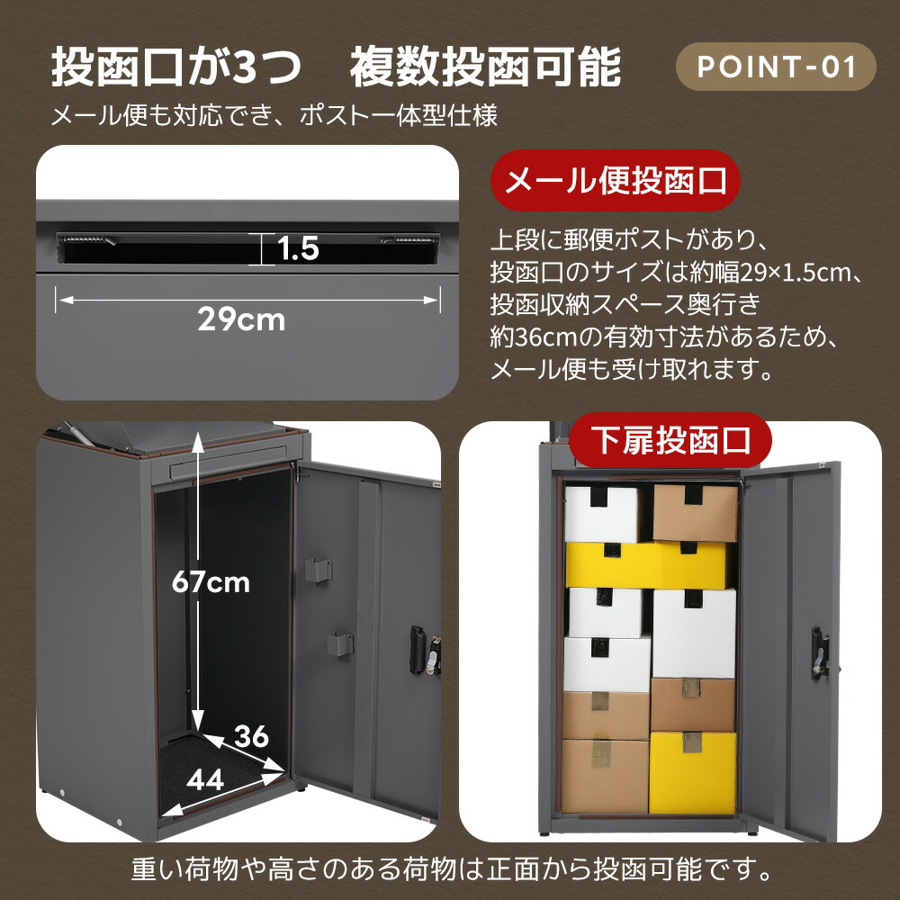 宅配ボックス 据置型 大容量 投函口3 ブラック グレー