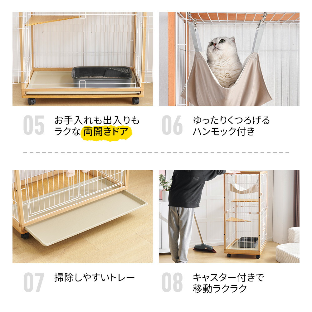 猫 ケージ キャットケージ 2段 木製 ペット ペットグッズ 人気