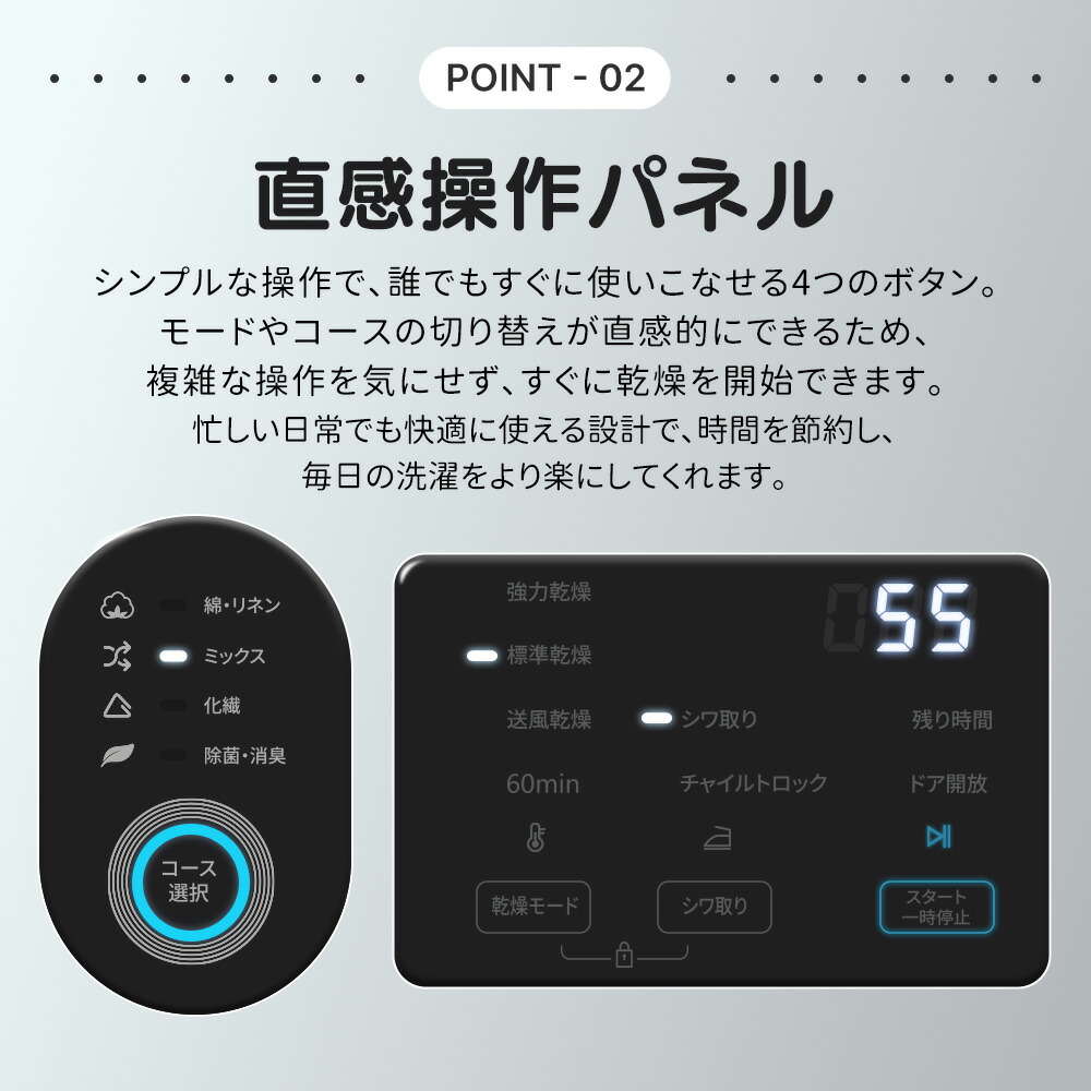 検索キーワード:【UV 高温除菌】SENTERN 衣類乾燥機 8kg 家庭用 大容量 大型 乾燥機 自動乾燥 温度調節 除湿 高温除菌 シワ取り 布団乾燥 アイロン 静音 チャイルドロック ドラム式 湿気対策 梅雨対策 カビ対策 花粉対策 PSE認証済み