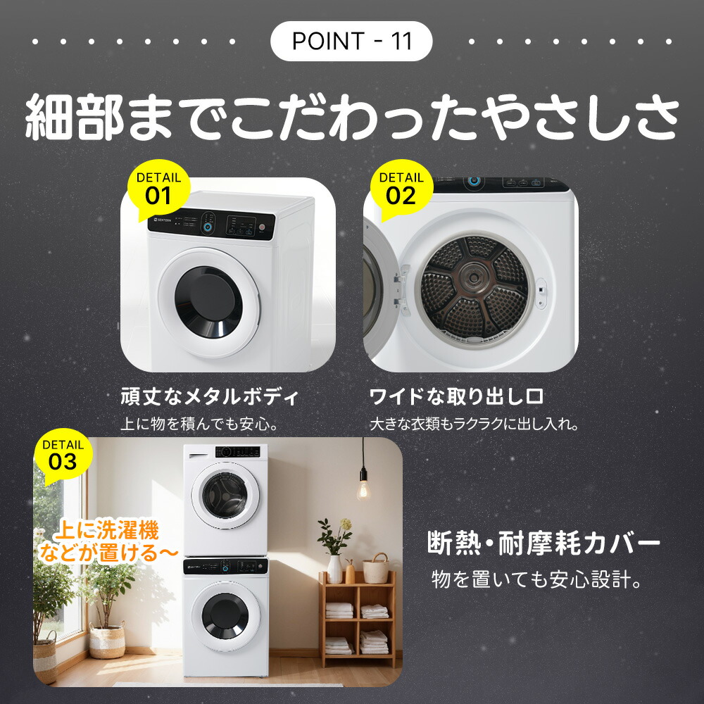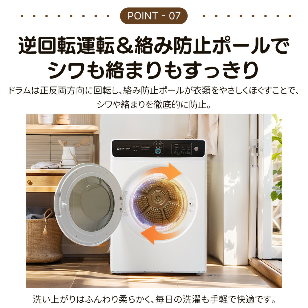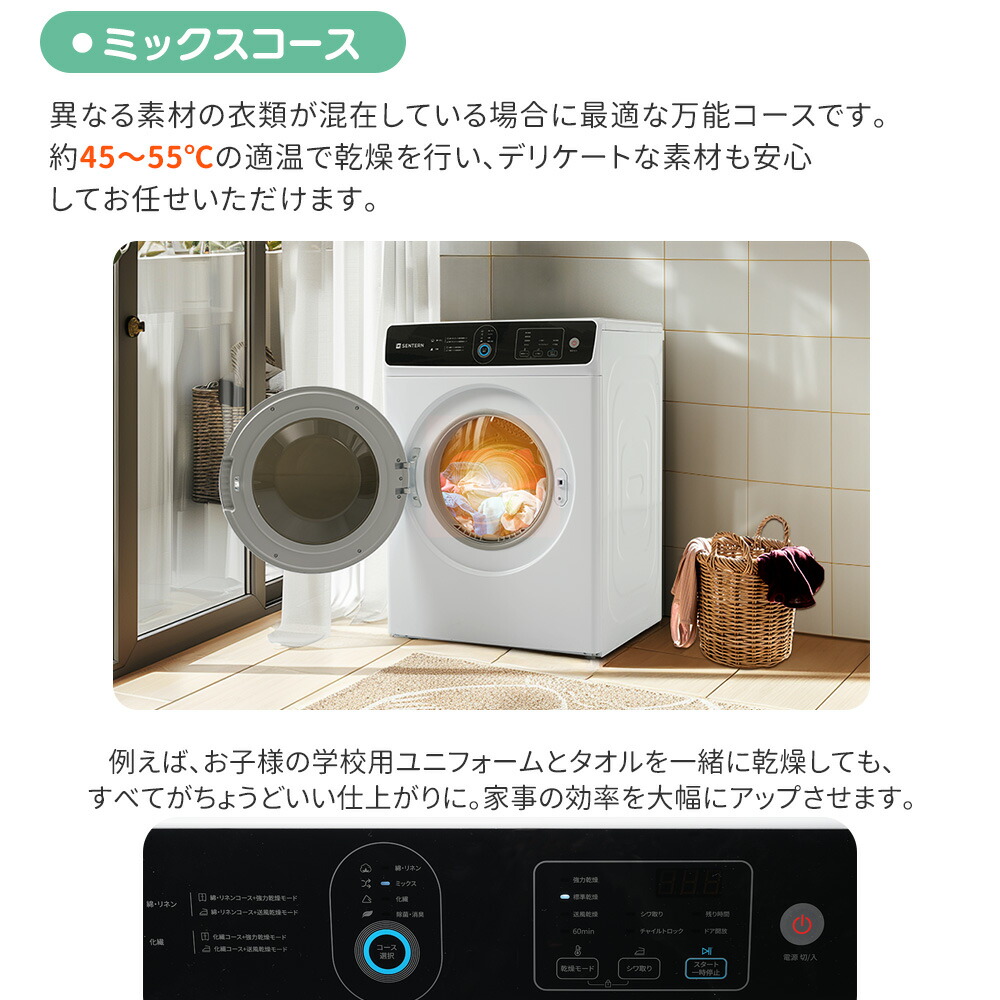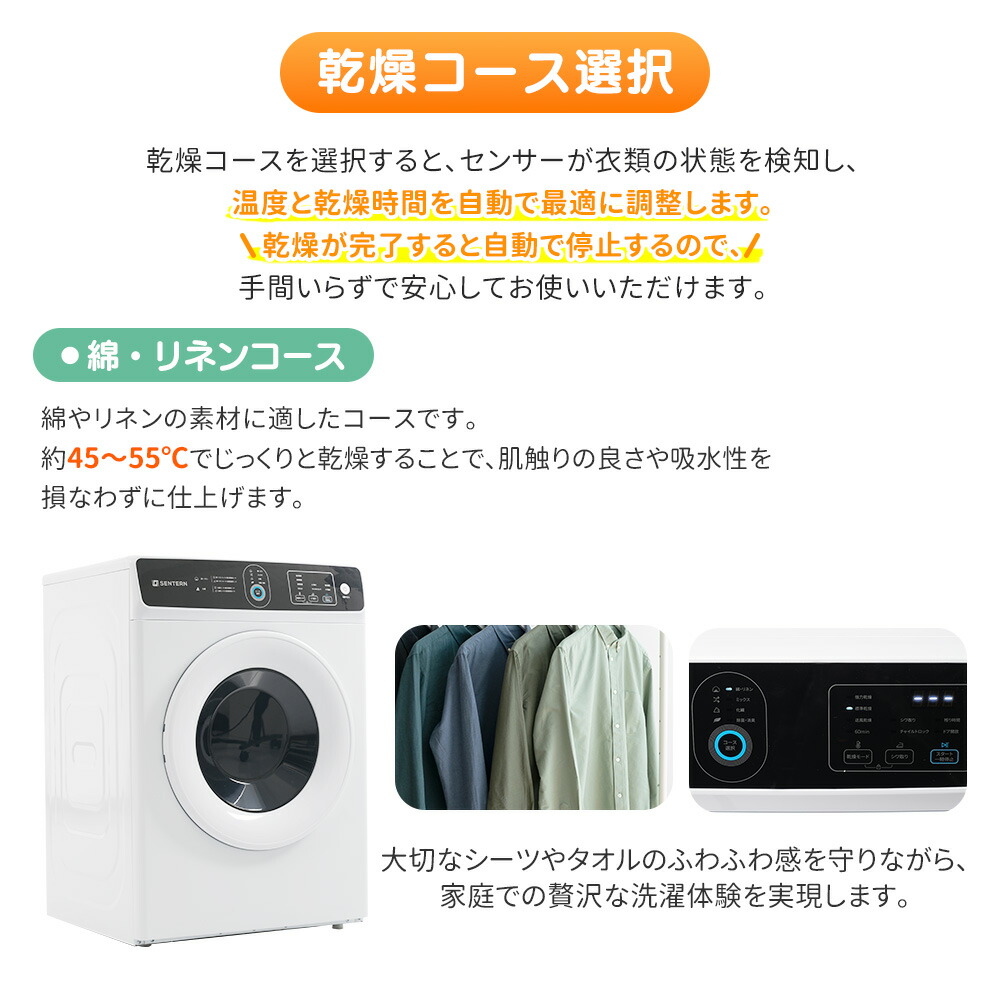SENTERN 衣類乾燥機 8kg 家庭用 大容量 大型 乾燥機 自動乾燥 温度調節 花粉症対策 除湿 高温除菌 シワ取り 布団乾燥 アイロン 静音 ドラム式 湿気対策 梅雨対策 チャイルドロック