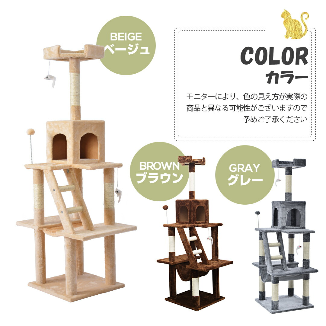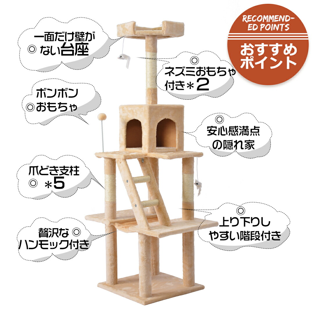 キャットタワー ハンモック付き 据え置 猫用品 キャットタワー 新登場! ベージュ グレー ブラウン