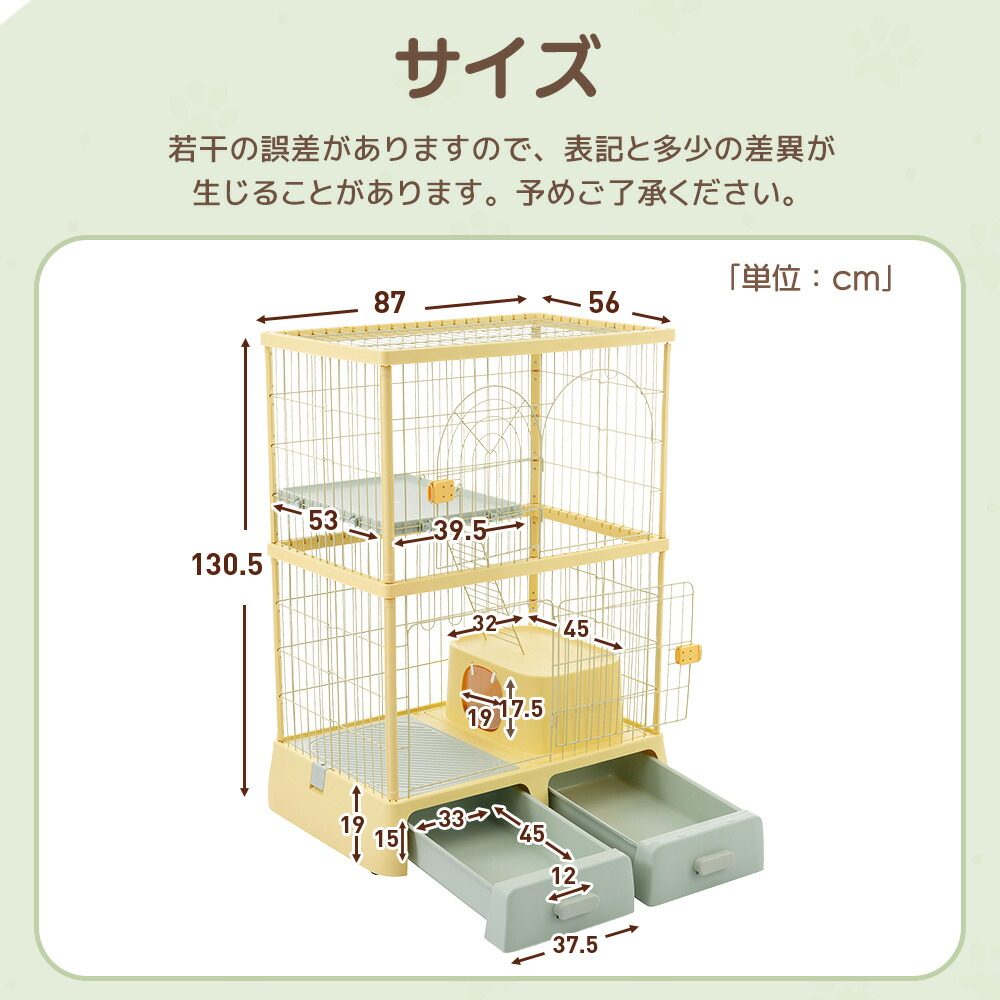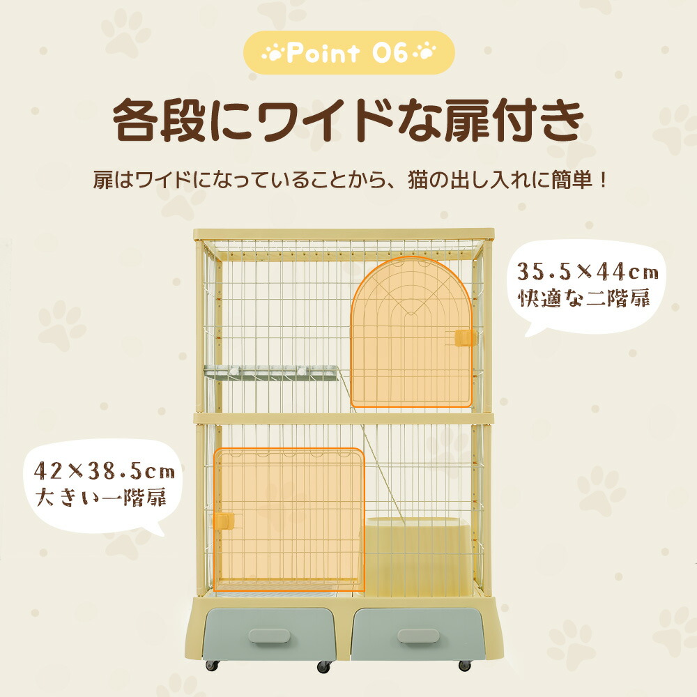 猫 ケージ 掃除しやすいトイレ キャットケージ 2段 幅広設計 引き出しトレー トイレ付き ドア付き 猫砂の飛び散り防止 自由組み合わせ 多頭飼い ゲージ キャスター付き 脱走防止 キャットハウス
