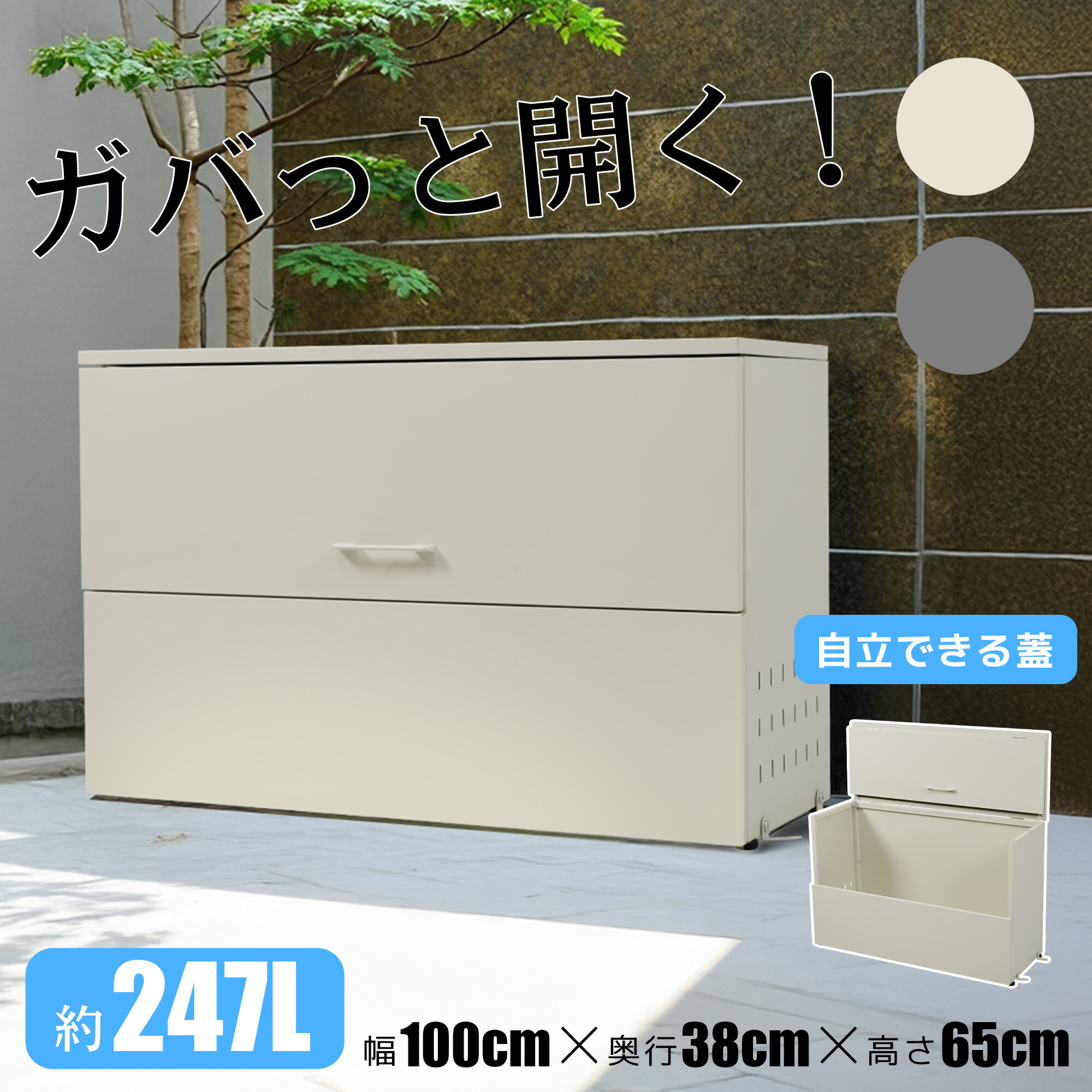 大型屋外ゴミ収納庫 幅100*奥行38 ホワイトグレー グレー