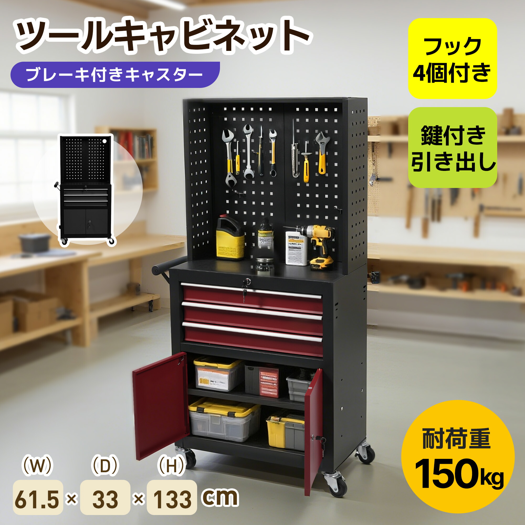 ツールテーブル ツールワゴン ツールカ ブラック レッド