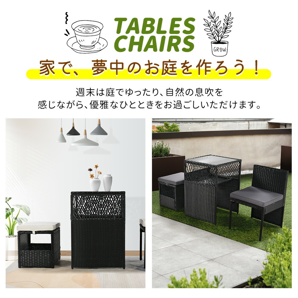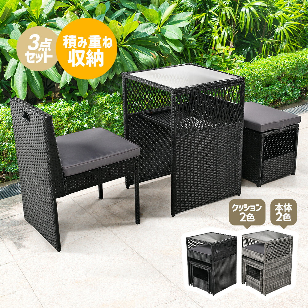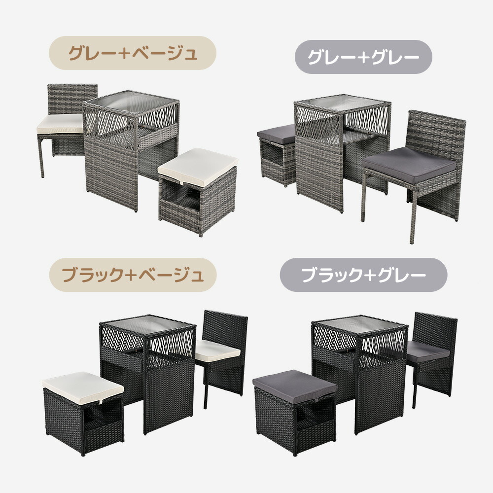 ガーデン テーブル 3点セット ラタン ブラック グレー ベージュ グレー