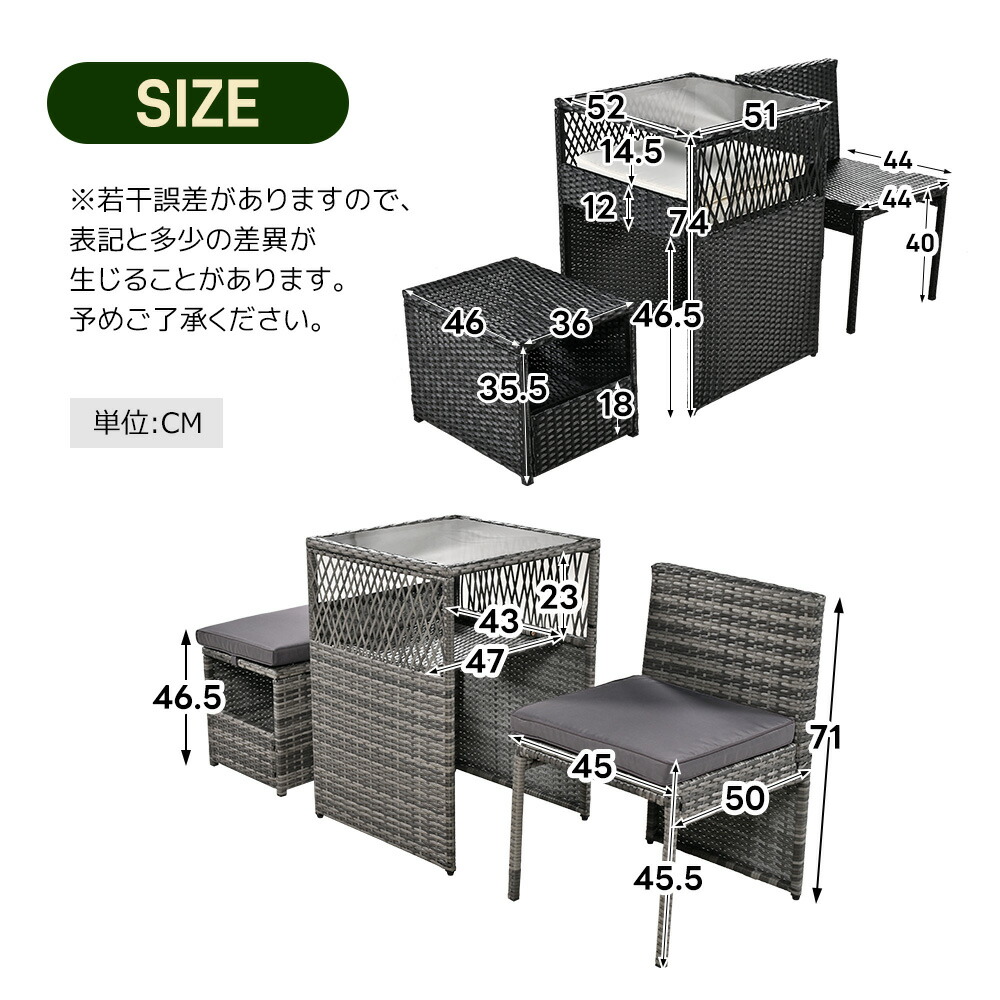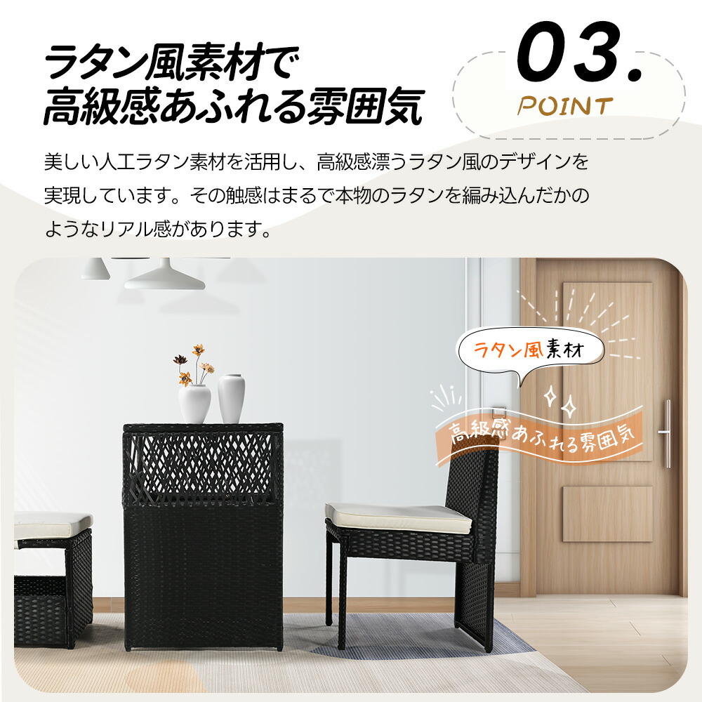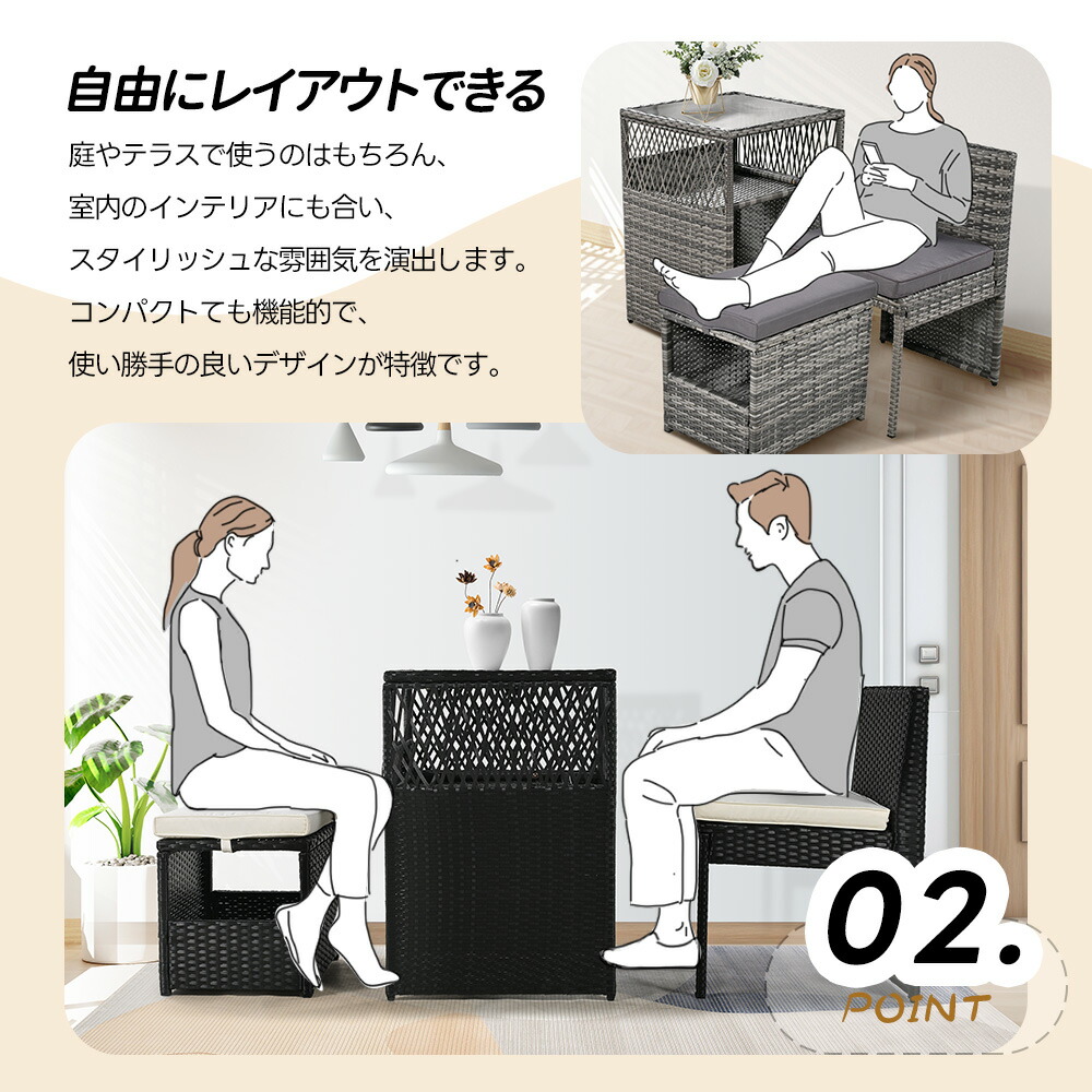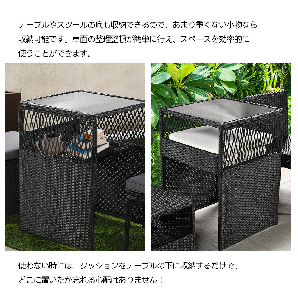 ガーデン テーブル 3点セット ラタン ブラック グレー ベージュ グレー