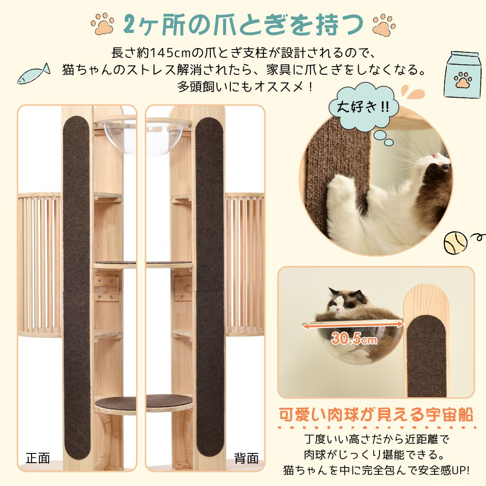 キャットタワー 据え置き 木製 天然木 ペット ペットグッズ 続々登場