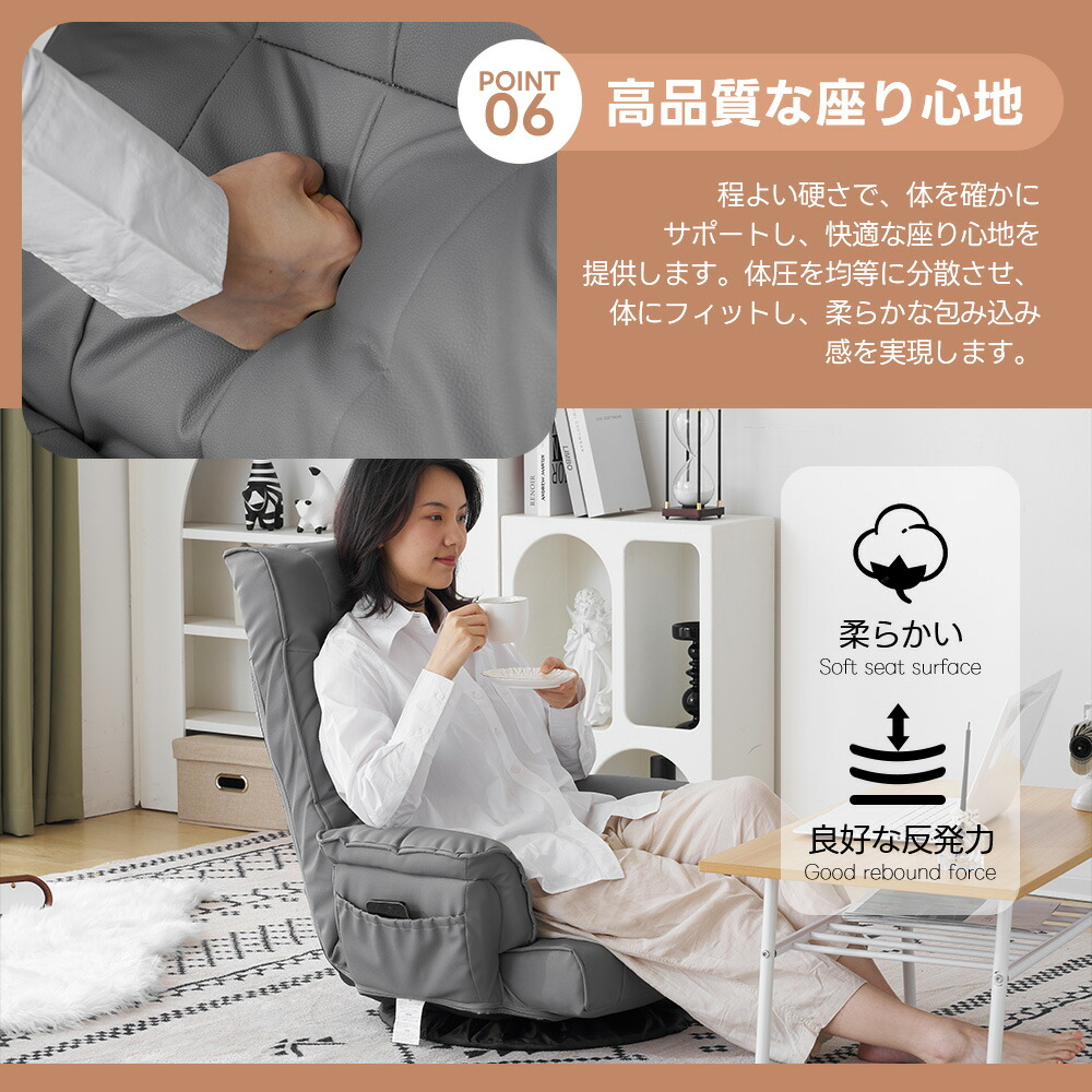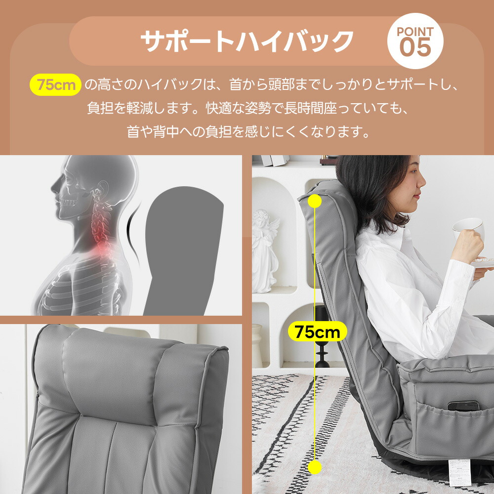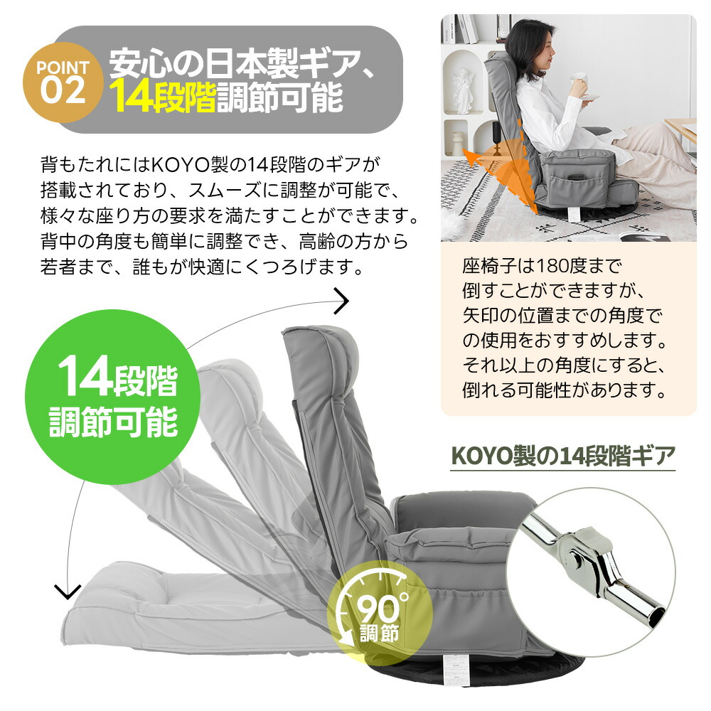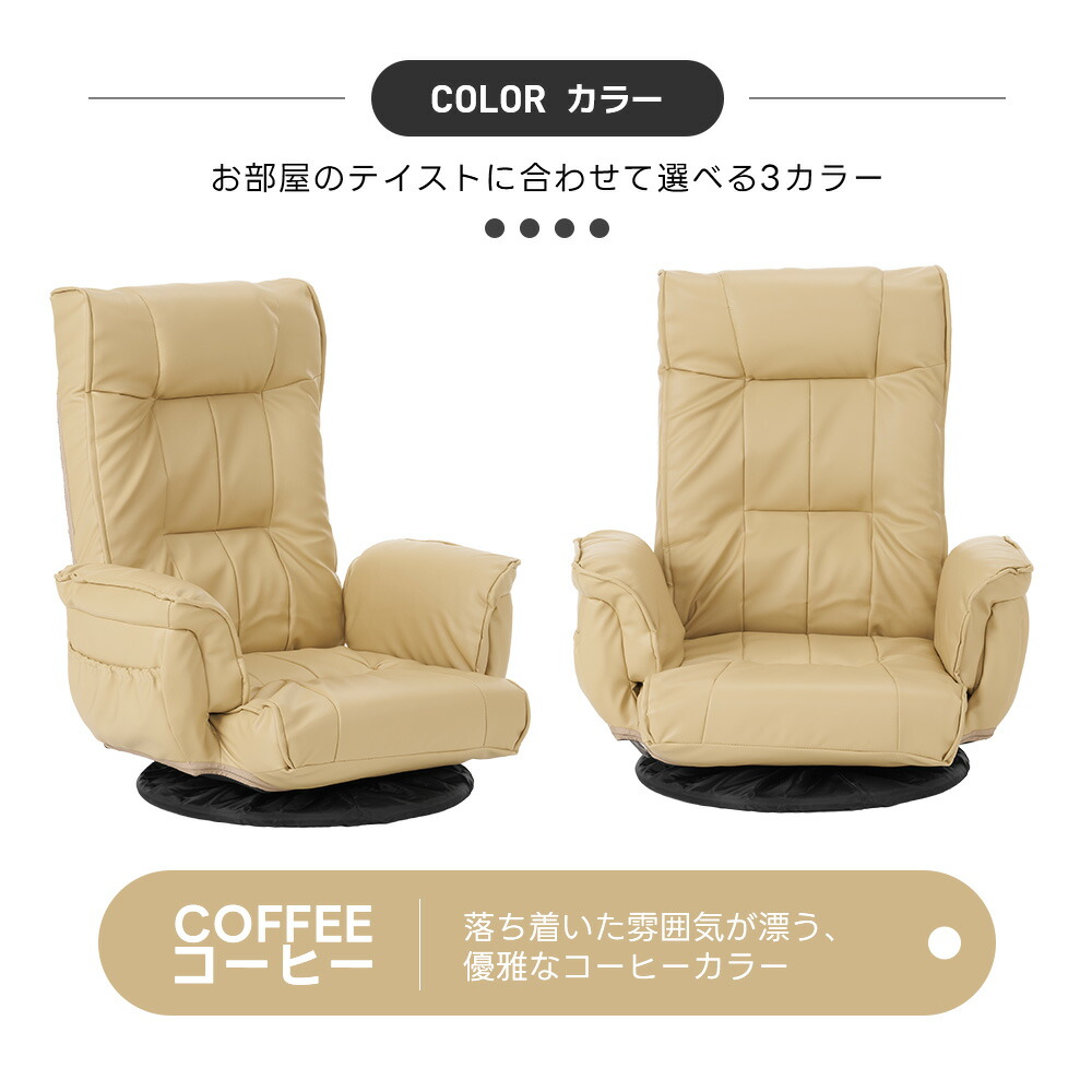 座椅子 42段階 肘掛け サイドポケッ コーヒー ライトグレー ブラック