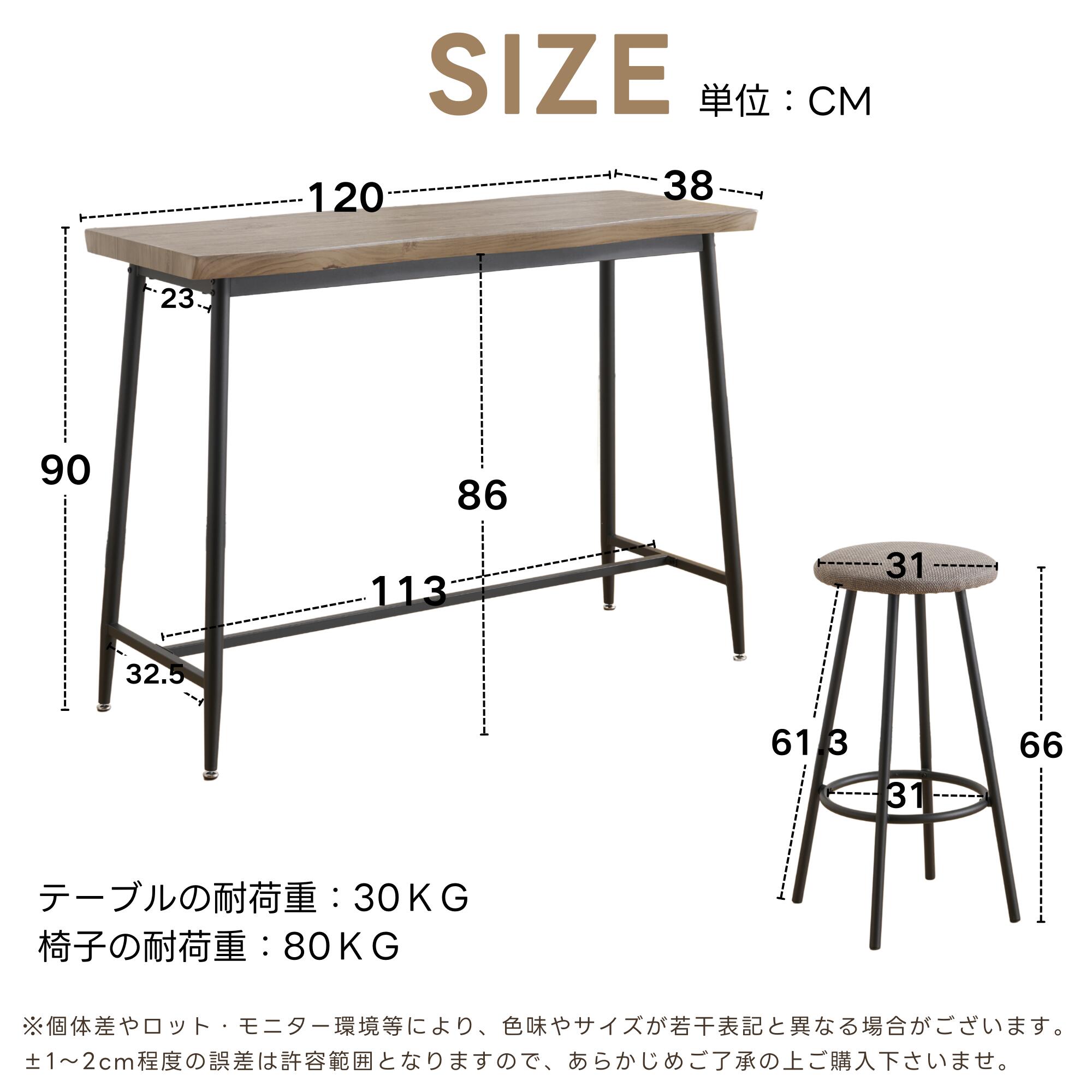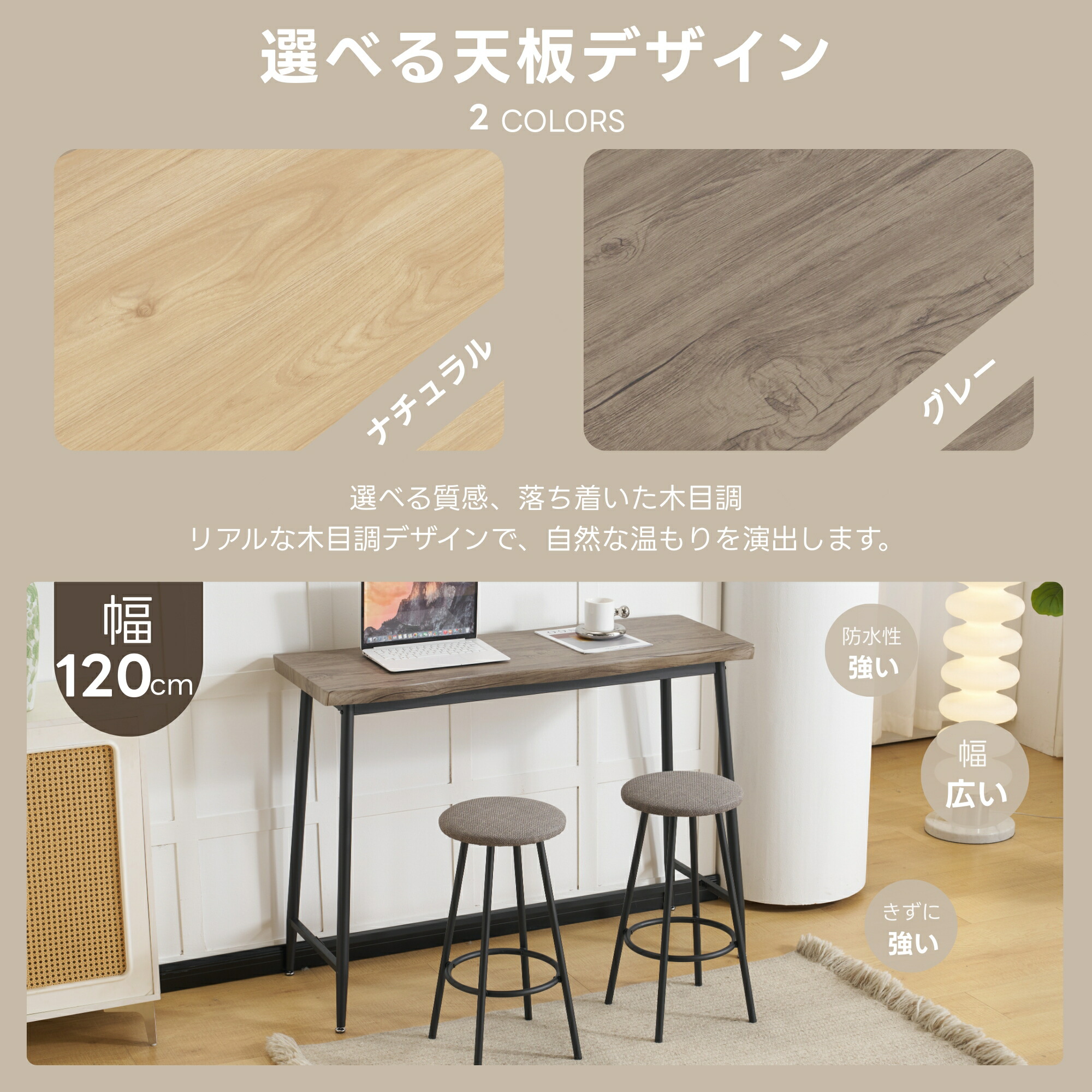 カウンターテーブル スツール 3点セッ ナチュラル グレー