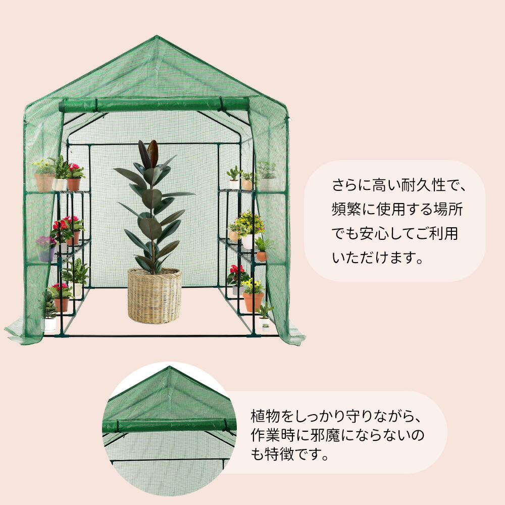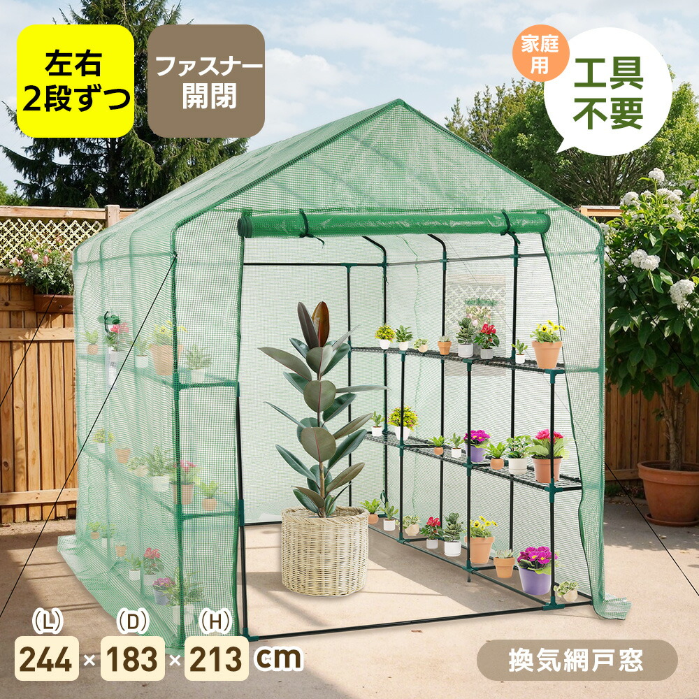 ビニールハウス ビニール温室 左右2段 温室 家庭用 大型 家庭菜園 ガーデンハウス フラワーハウス ラック ビニール カバー 組立式 菜園 花壇 観葉植物 雨よけ 霜よけ 園芸温室