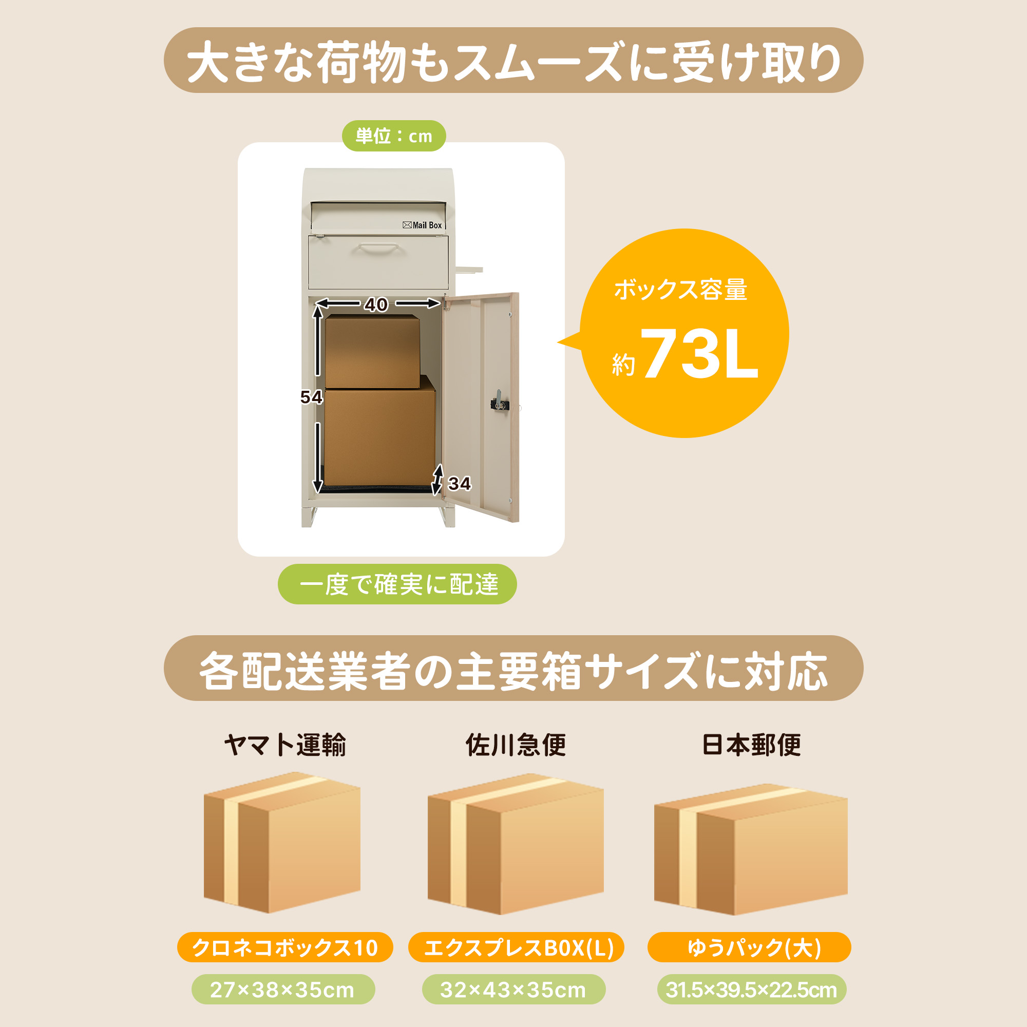 宅配ボックス 据置型 大容量 投函口 ベージュ+木目 ブラック+木目