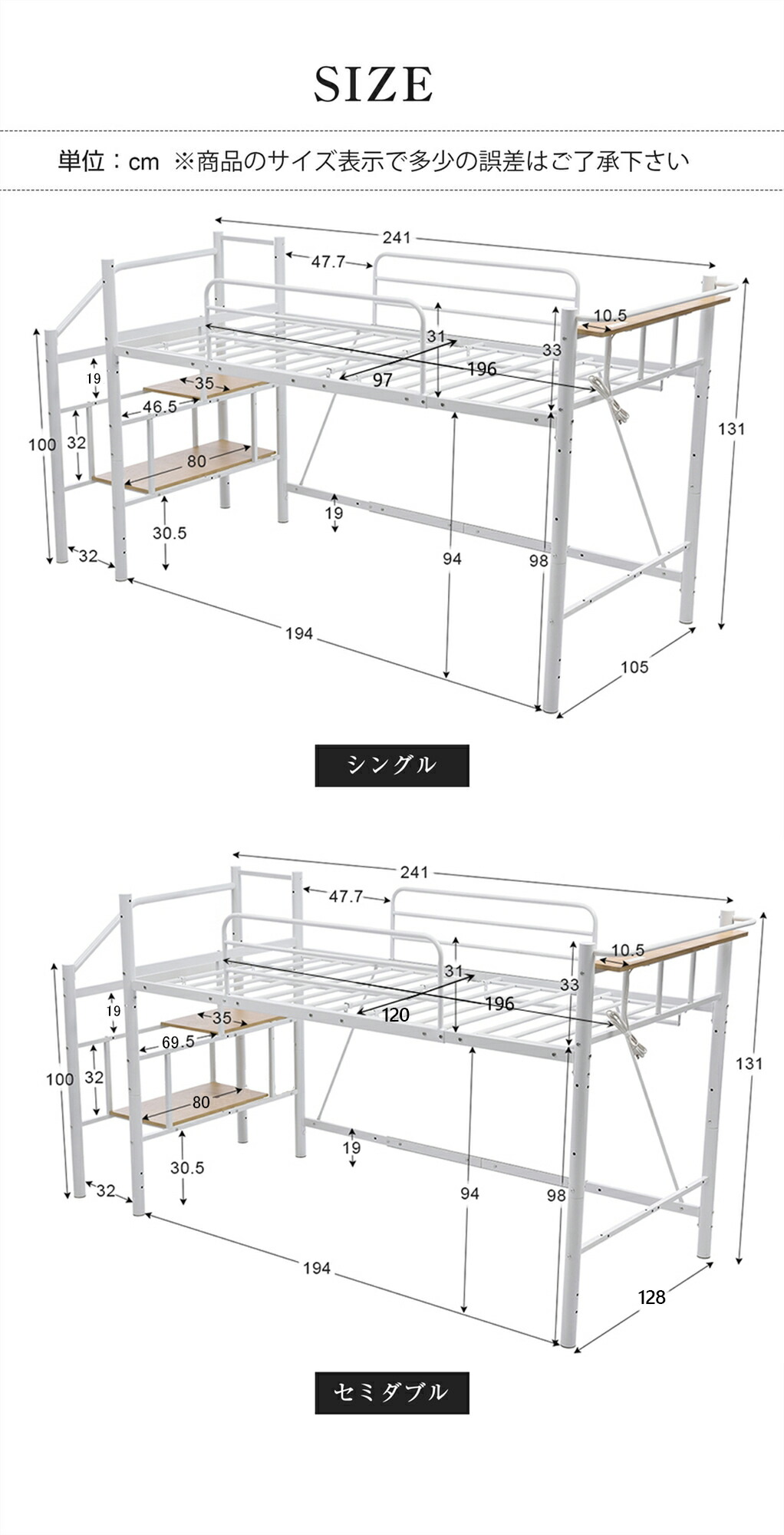 ロフトベッド パイプベッド シングル シングル セミダブル