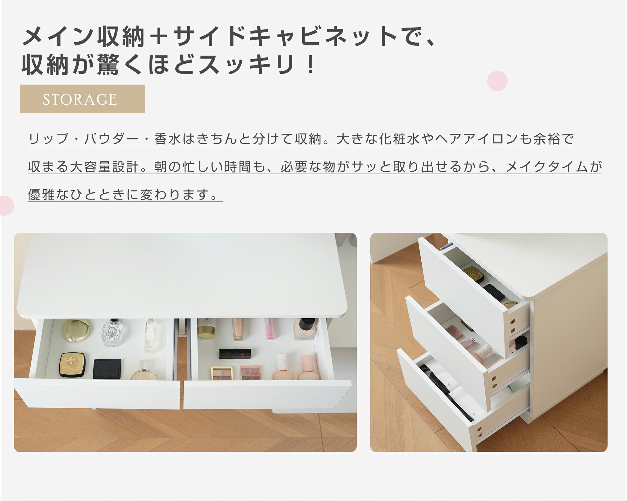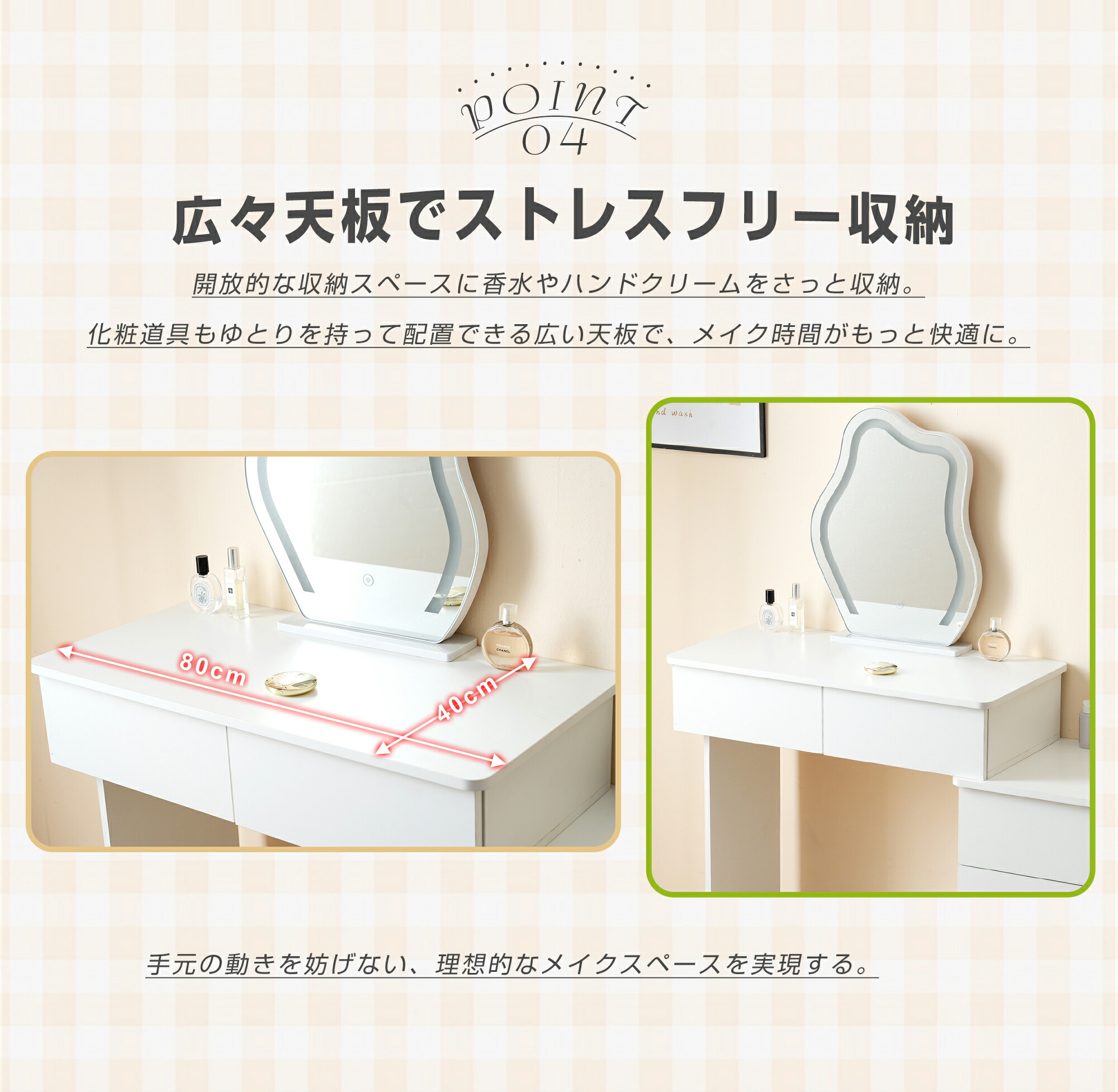 ドレッサー 化粧台 3色調節 鏡台 LEDミラー コンパクト 女優 引き出し付き 収納棚付き デスク 収納 可愛い おしゃれ 化粧テーブル 収納付き 一人暮らし メイク台