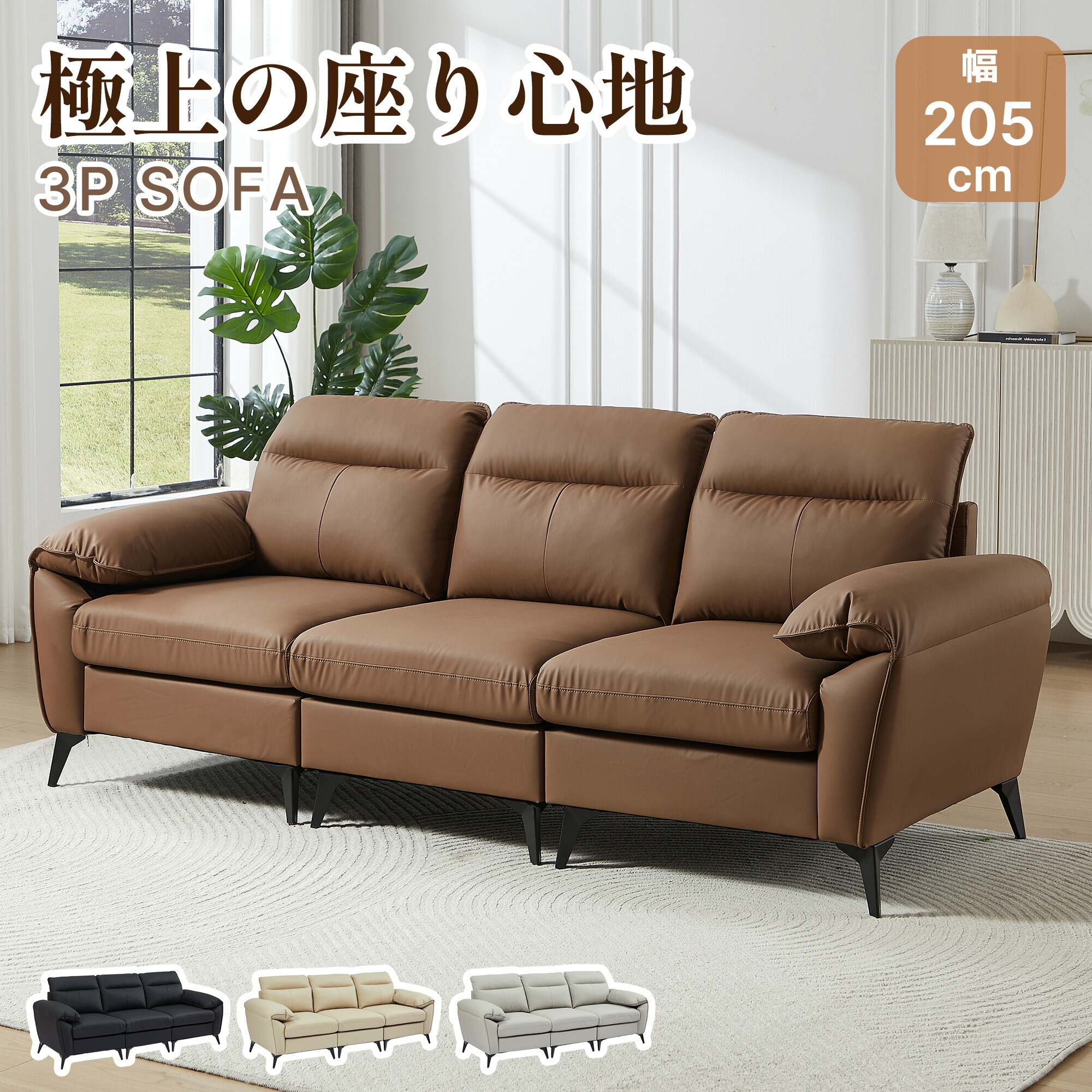 ソファ 3人掛け 北欧 ソフトレザーソ ベージュ ライトグレー キャメル ブラック