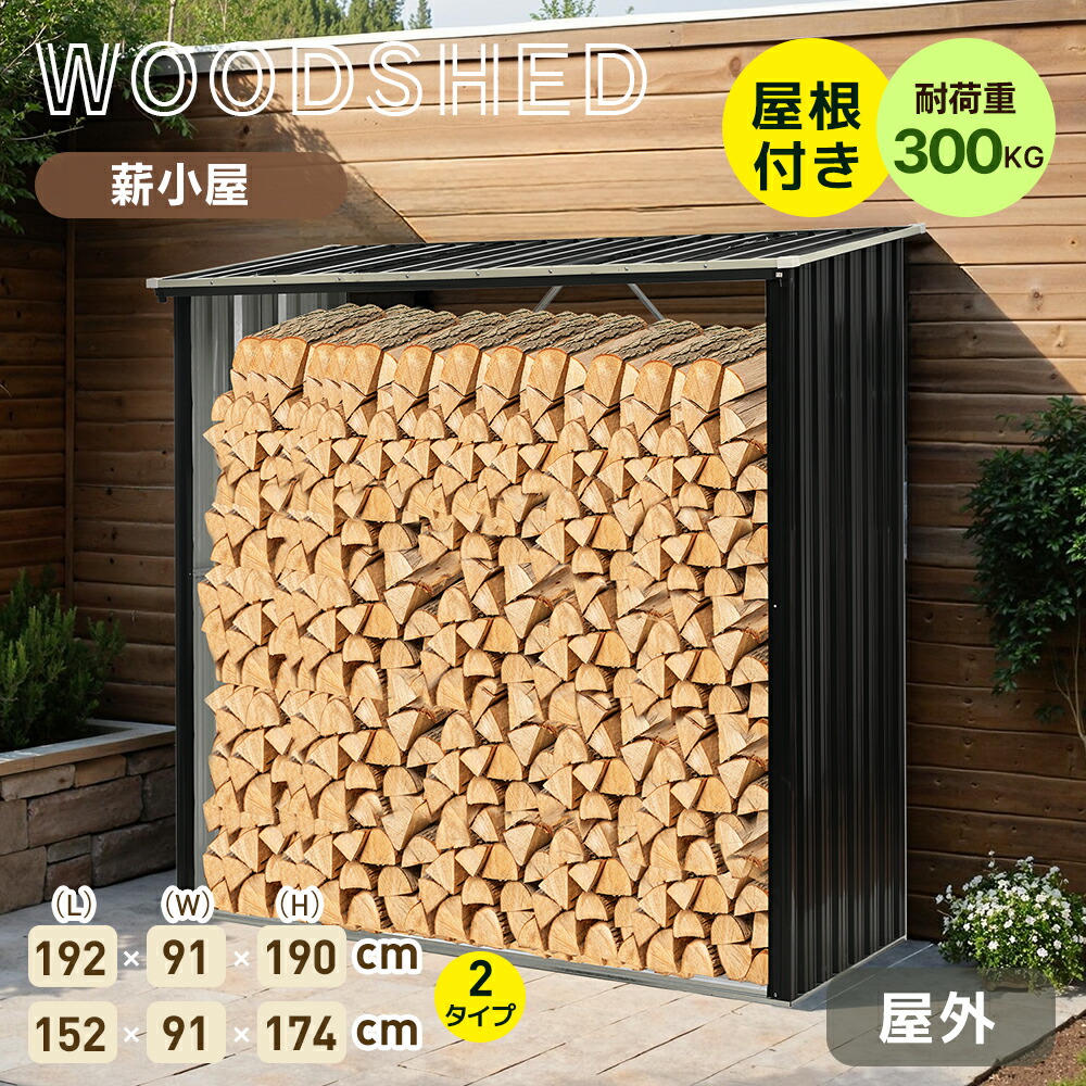 薪小屋 通気 物置 屋外 防さび スチ 高さ190×奥行91×幅192cm 高さ174×奥行91×幅152cm