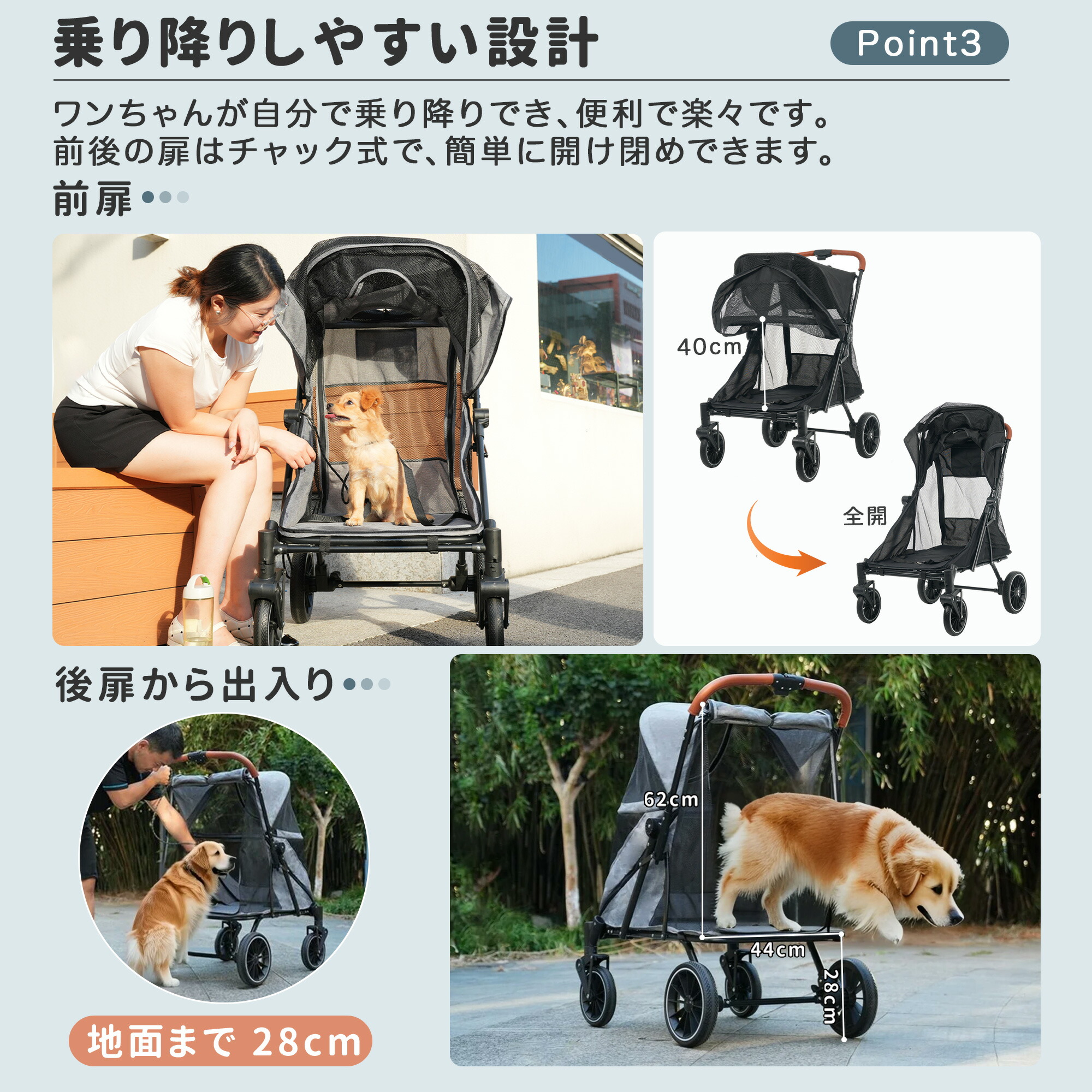 ペットカート 大型犬 中型犬 多頭用 折りたたみ 大径タイヤ 4輪 犬カート 収納ポケット ストッパー付き ドッグカート ペットバギー カート ペット用 頑丈 軽量 介護用 お出かけ 通院 組立簡単