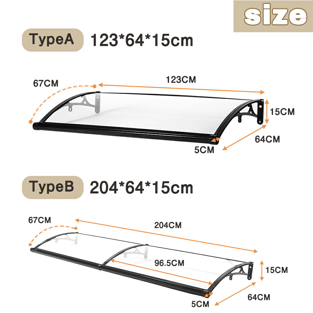 雨よけ 屋根庇 雪対策 ひさし 組立が A B 透明 茶色