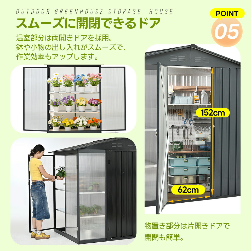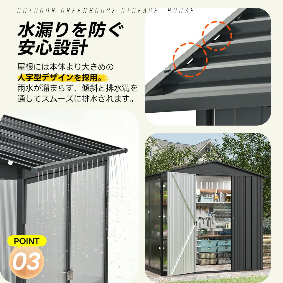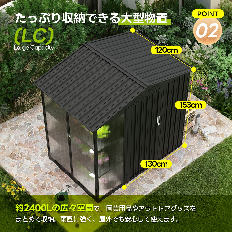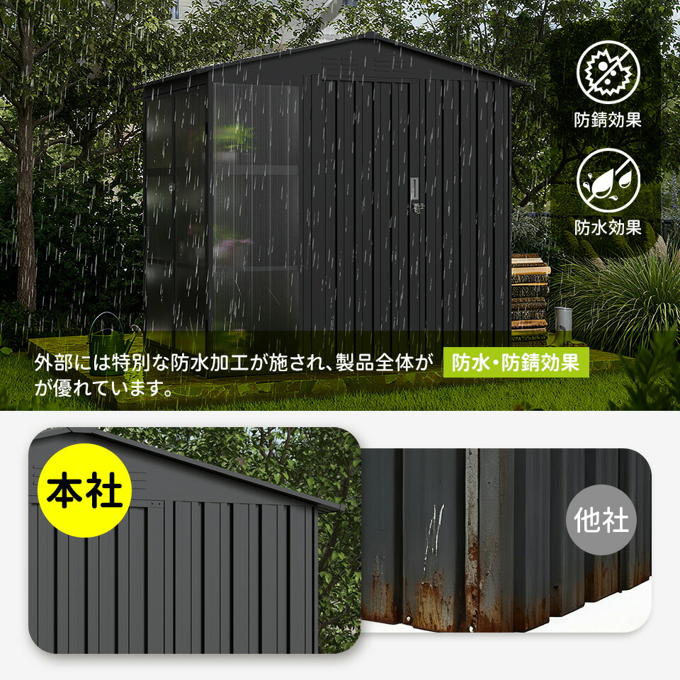 屋外 スチール 倉庫 防水 防さび 戸 グレー ブラック