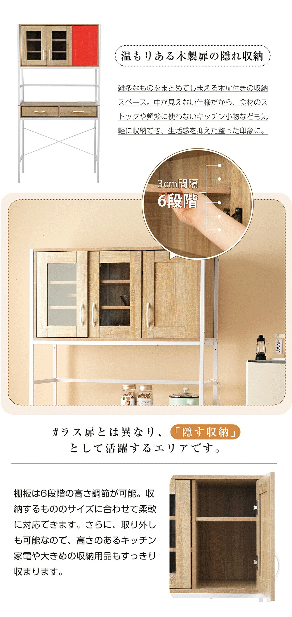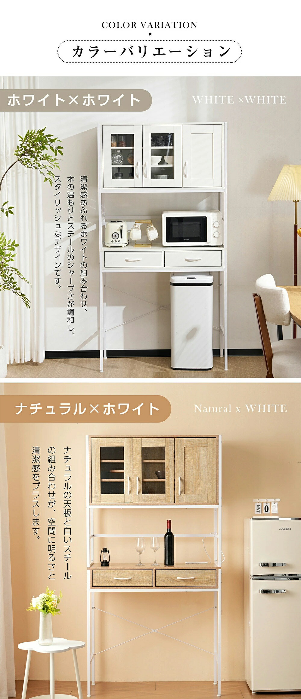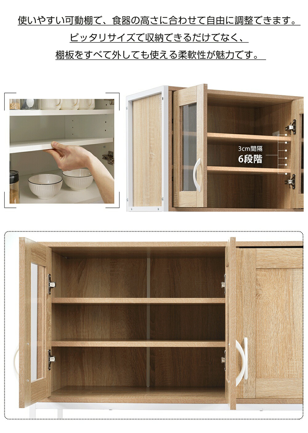食器棚 キッチンボード レンジボード ホワイト ナチュラル