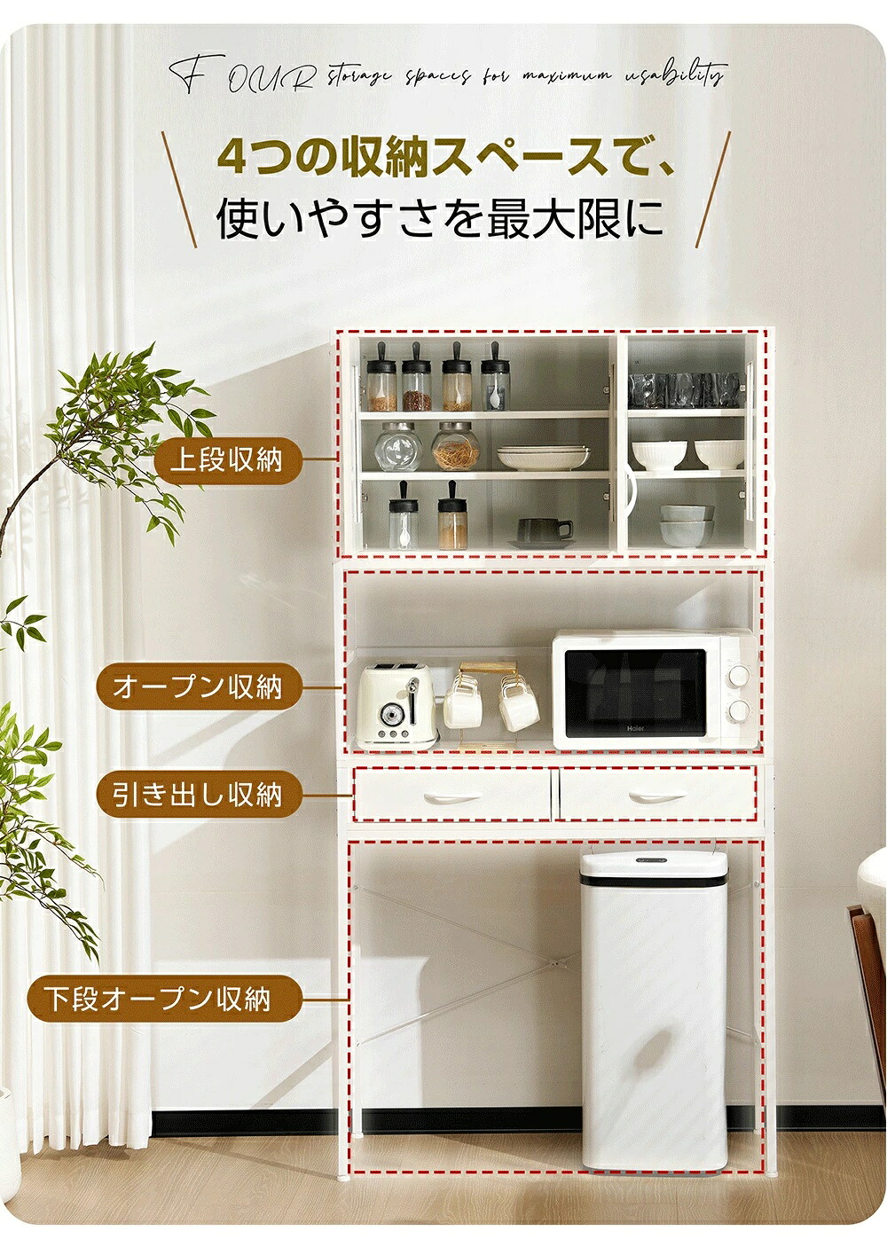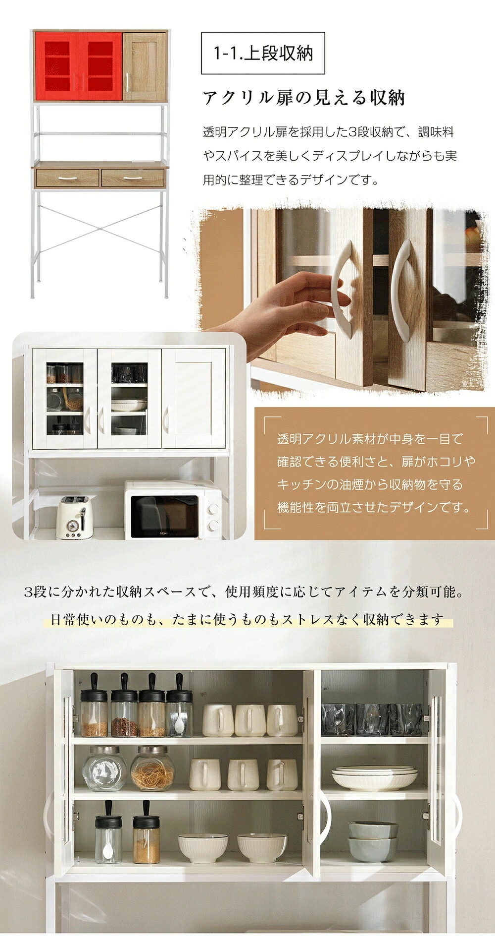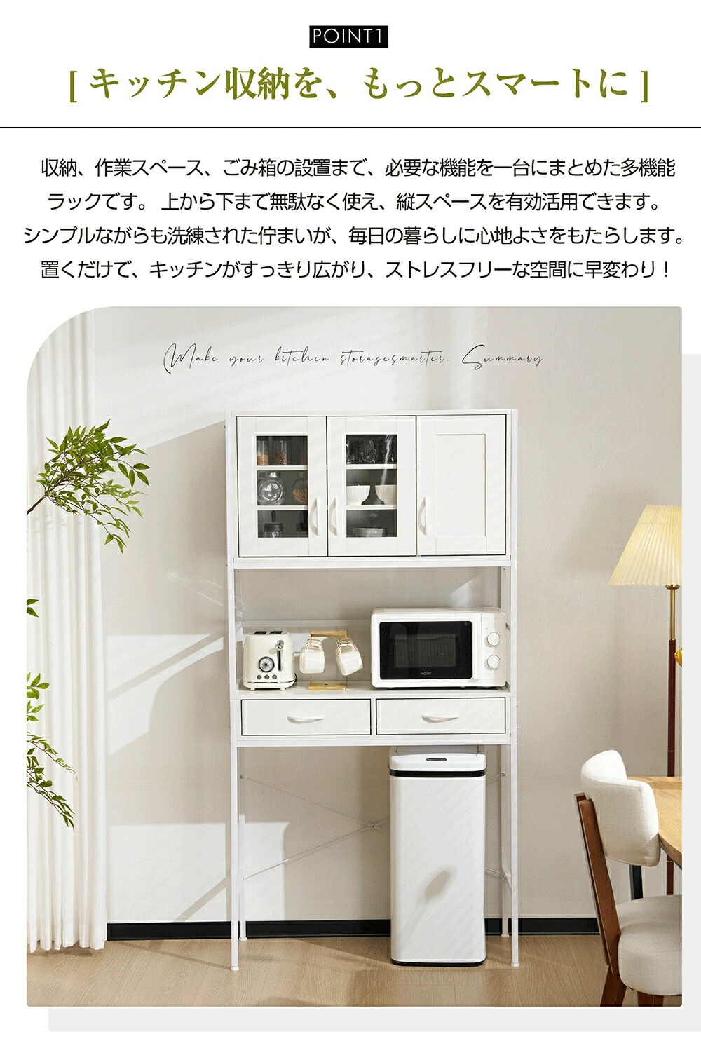 食器棚 キッチンボード レンジボード ホワイト ナチュラル