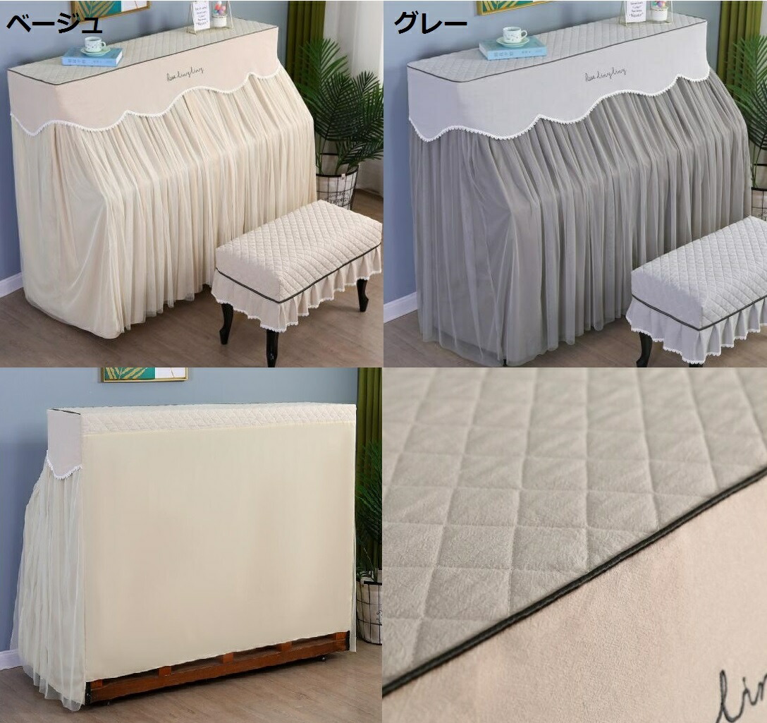 ピアノカバー アップライトピアノカバー ピアノカバー+シングル椅子カバー ピアノカバー+ダブル椅子カバー グレー ベージュ
