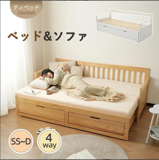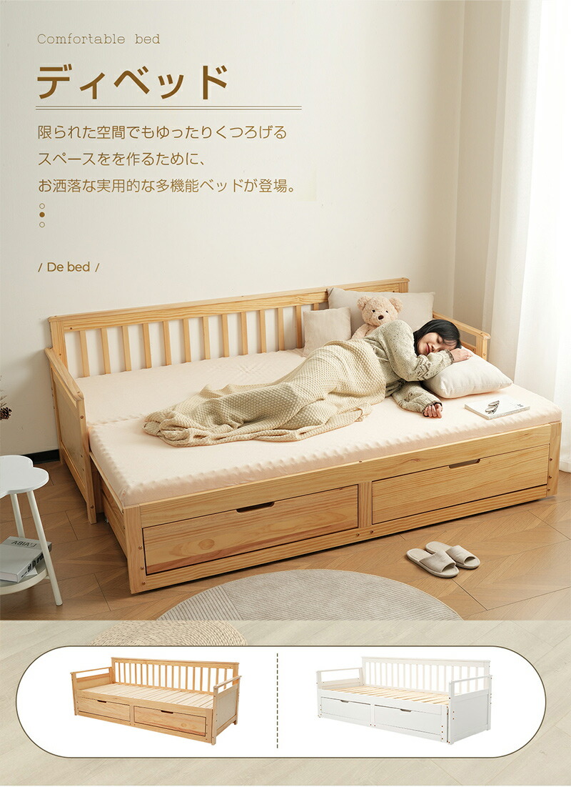 ソファベッド ディベッド 伸長式ベッド ホワイト ナチュラル
