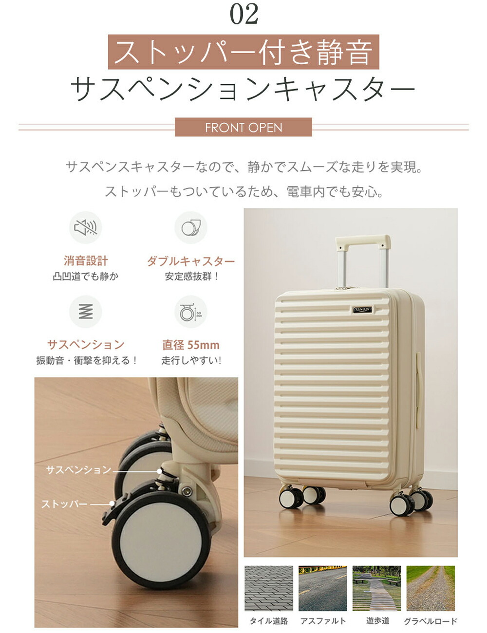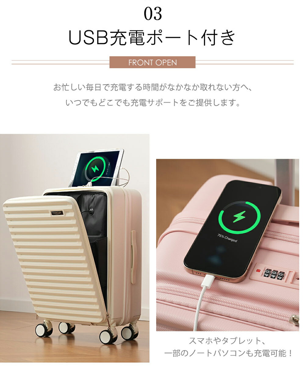スーツケース フロントオープン 機内持ち込み キャリーバッグ Sサイズ MSサイズ USBポート付き ドリンクホルダー付き かわいい ストッパー付き ダブルキャスター 軽量 女性 修学旅行 頑丈 静か