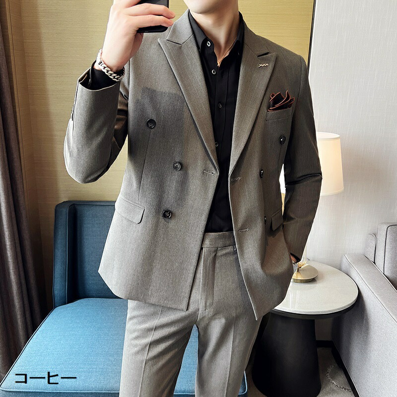 全4色スリーピーススーツ 3ピース 通 メンズファッション 人気 黒色 コーヒー グレー ブルー S M L XL 2XL 3XL 4XL 5XL 6XL 7XL