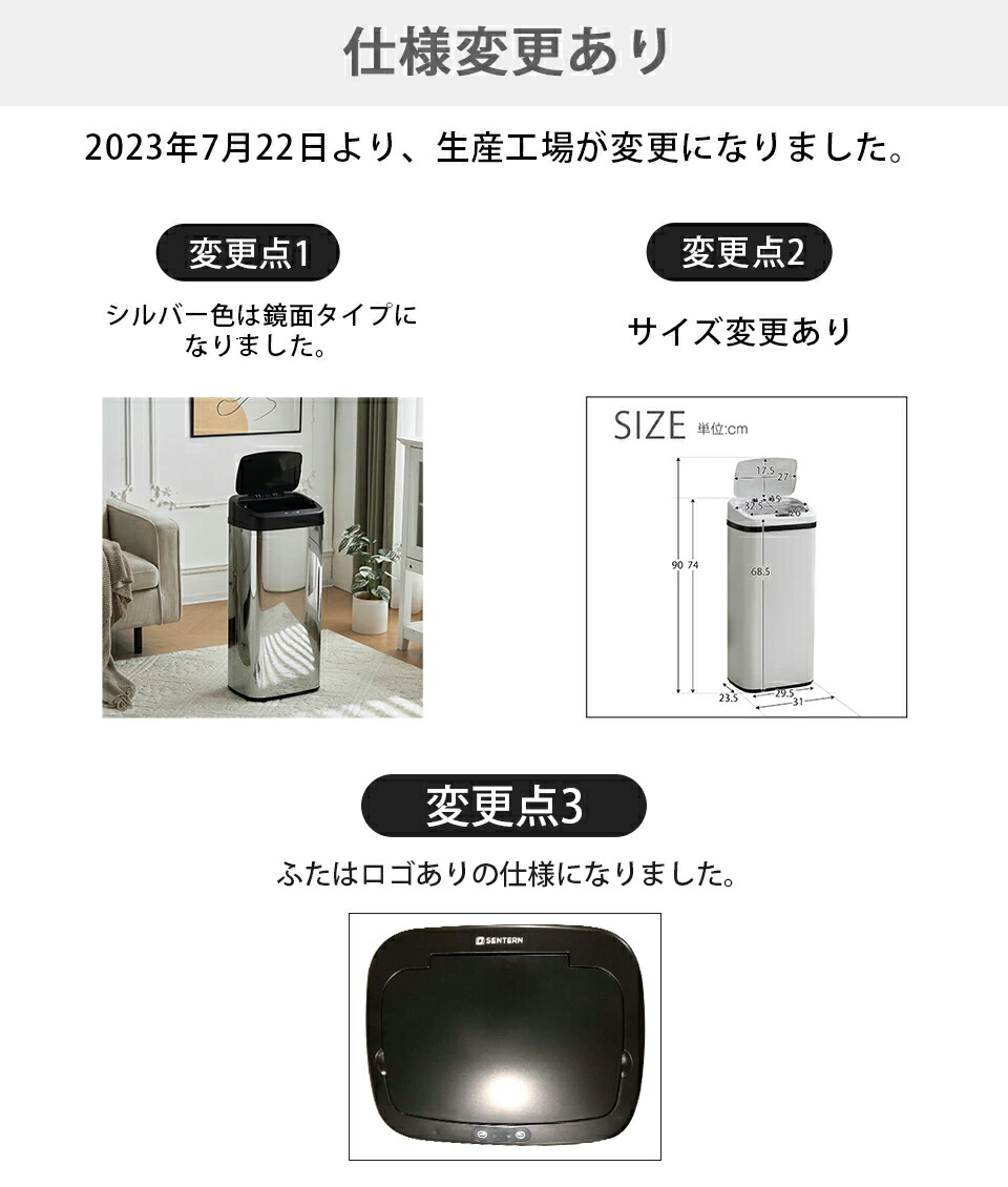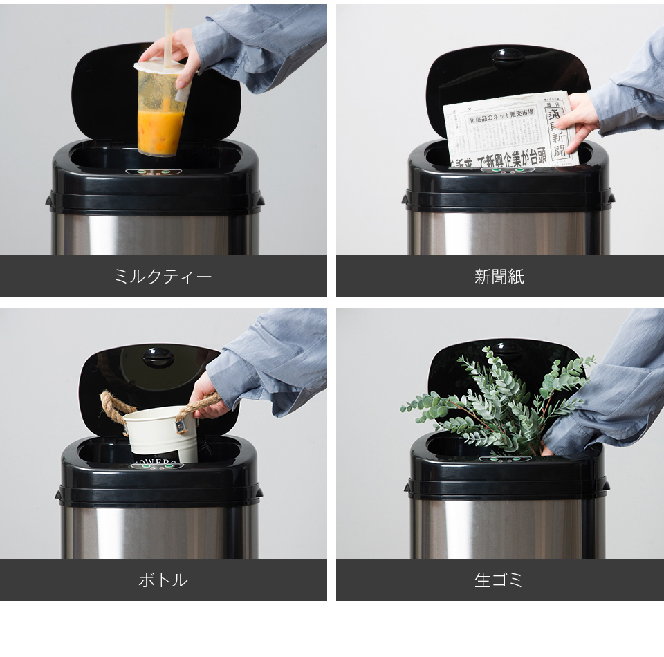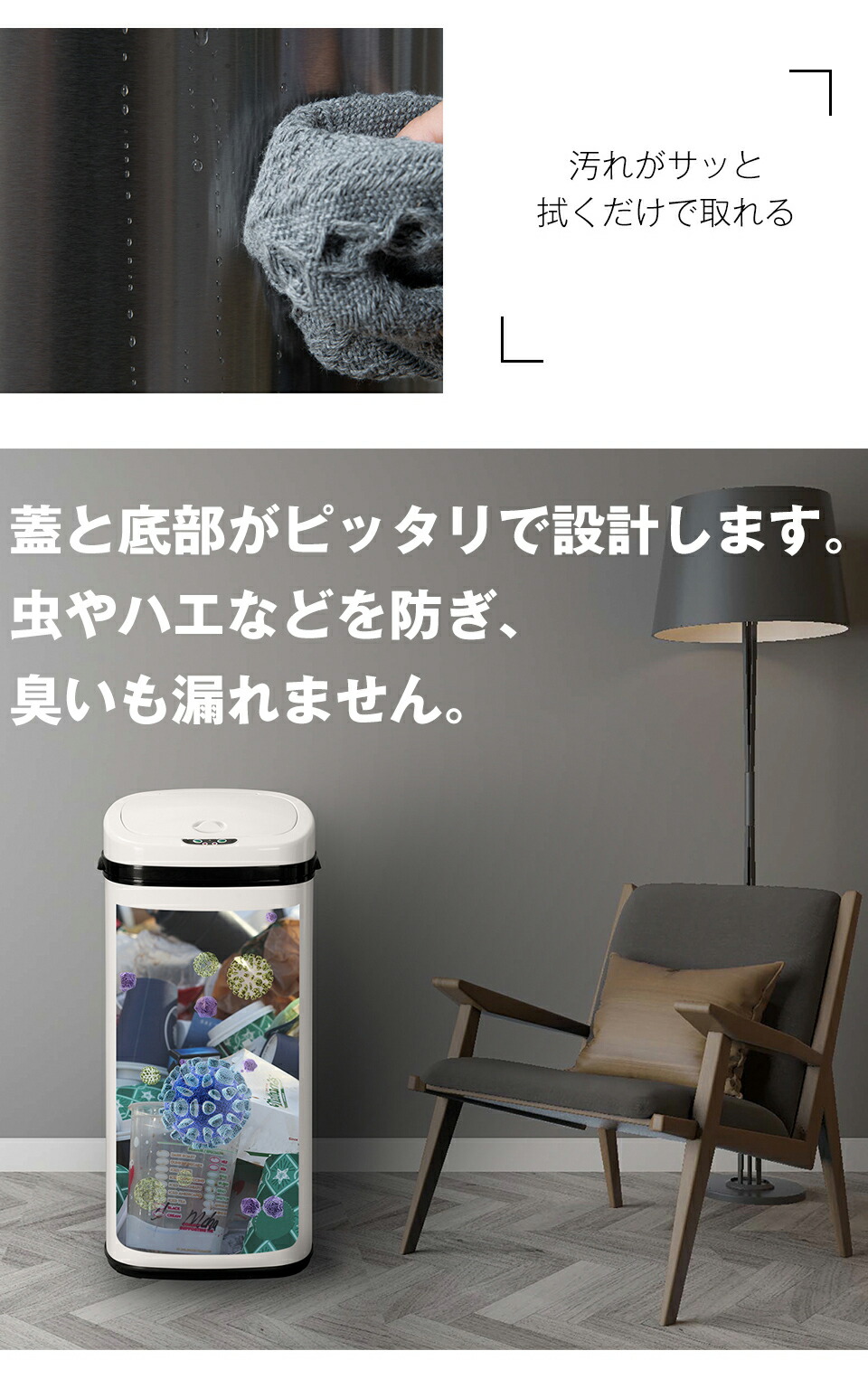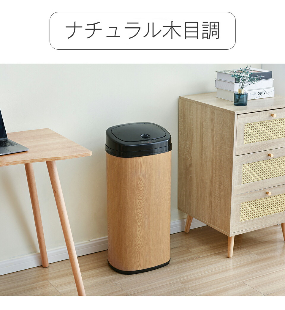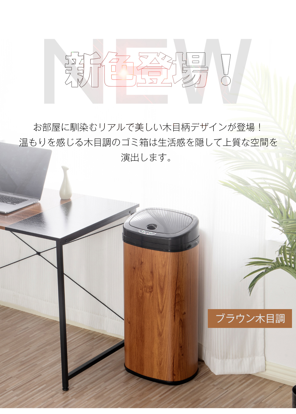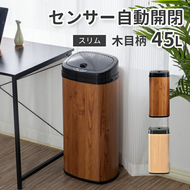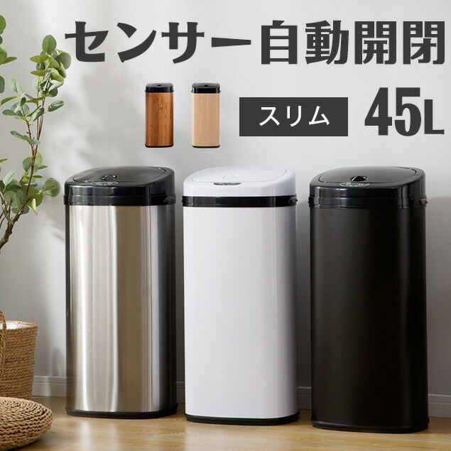 ゴミ箱 自動開閉 おしゃれ 45リット ホワイト ブラック シルバー ブラウン木目調 単品 2台セット