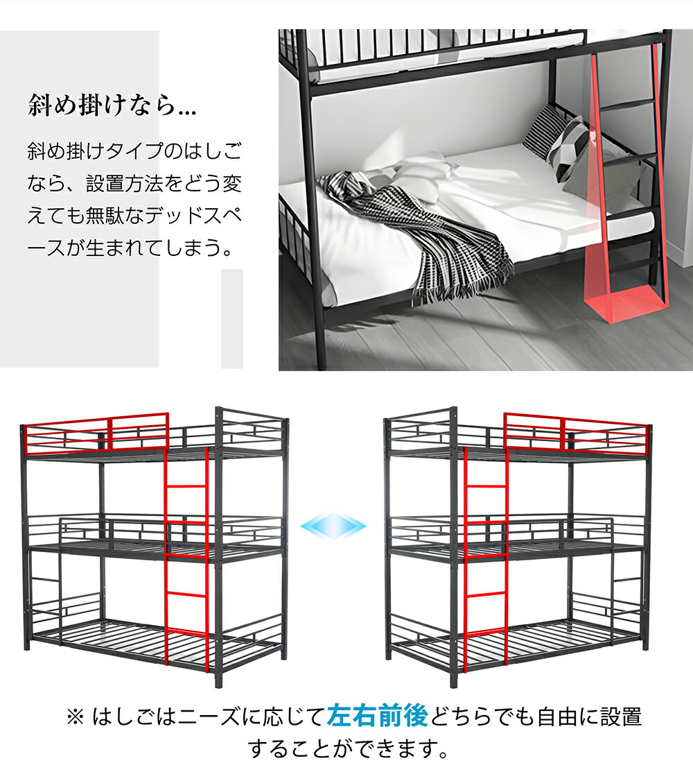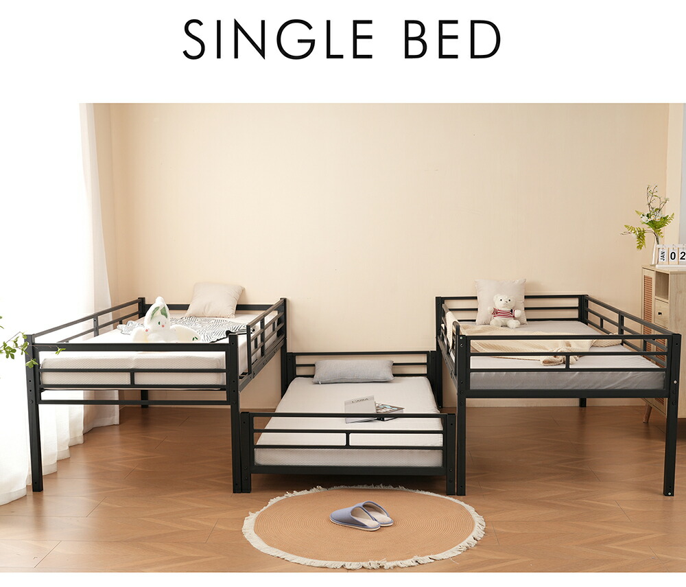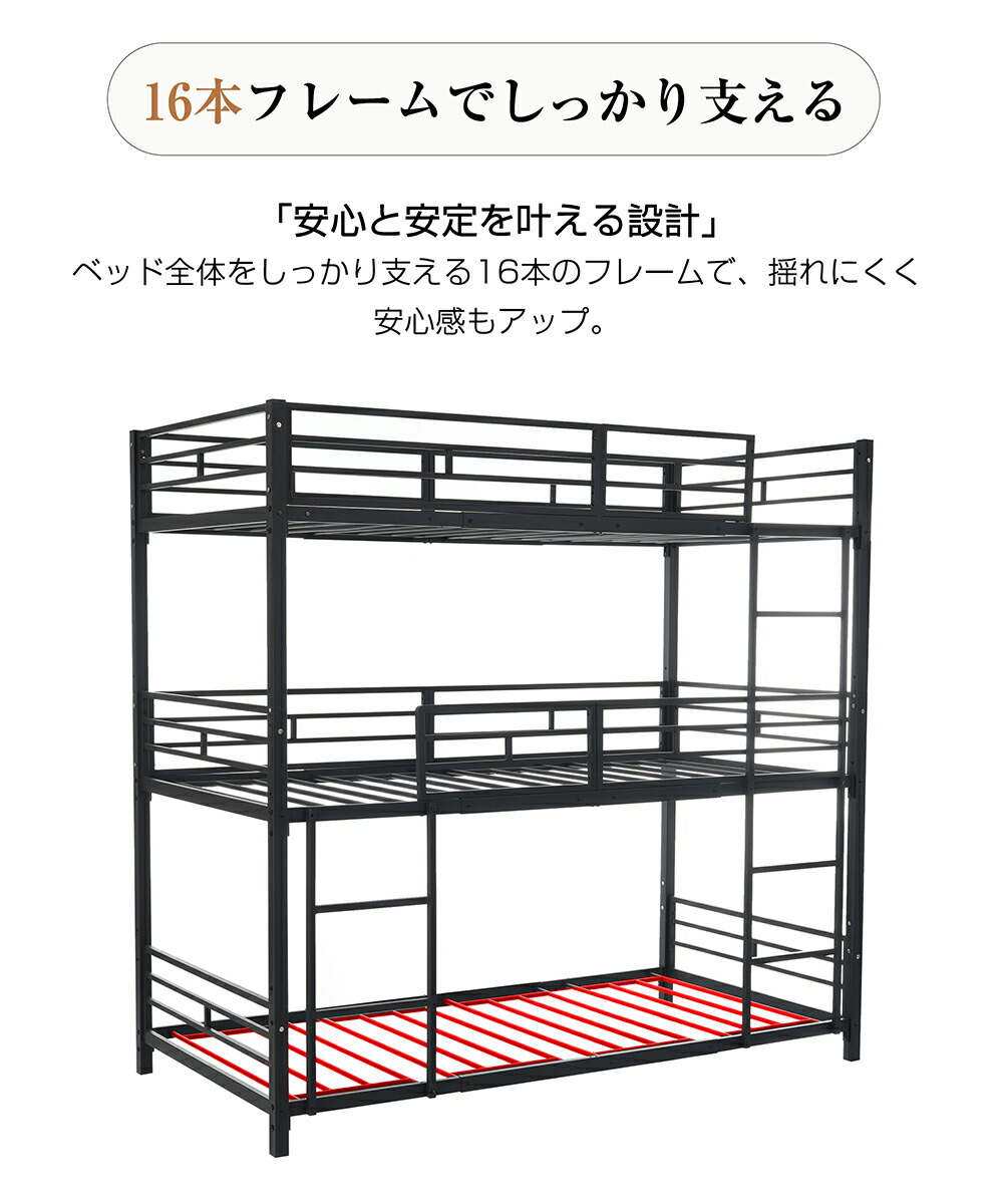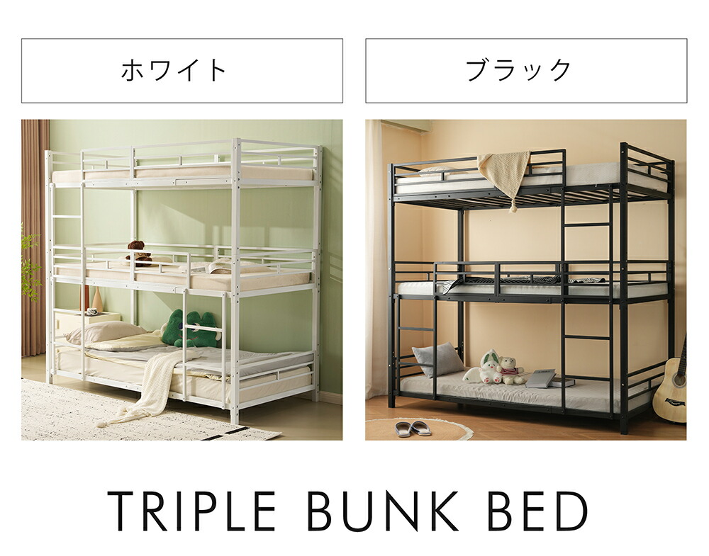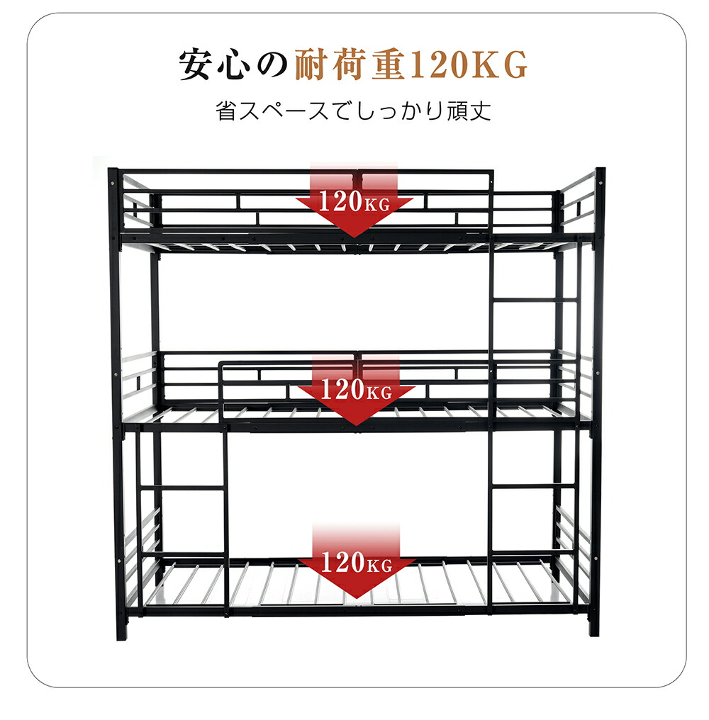 三段ベッド 子供 パイプ 大人用 シン ブラック ホワイト