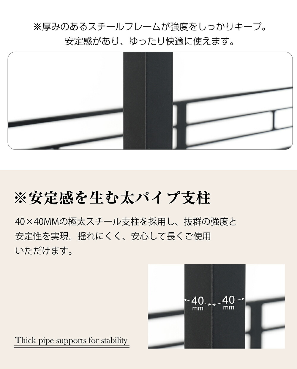 注意:直接、パイプへ体重をかけないでください、必ずマットレスをおいてご使用ください