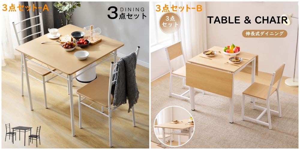 ダイニングテーブル 3点セット 2人用 ナチュラル ダークブラウン ブラウン 3点セット-A 3点セット-B 4点セット 5点セット-A 5点セット-B