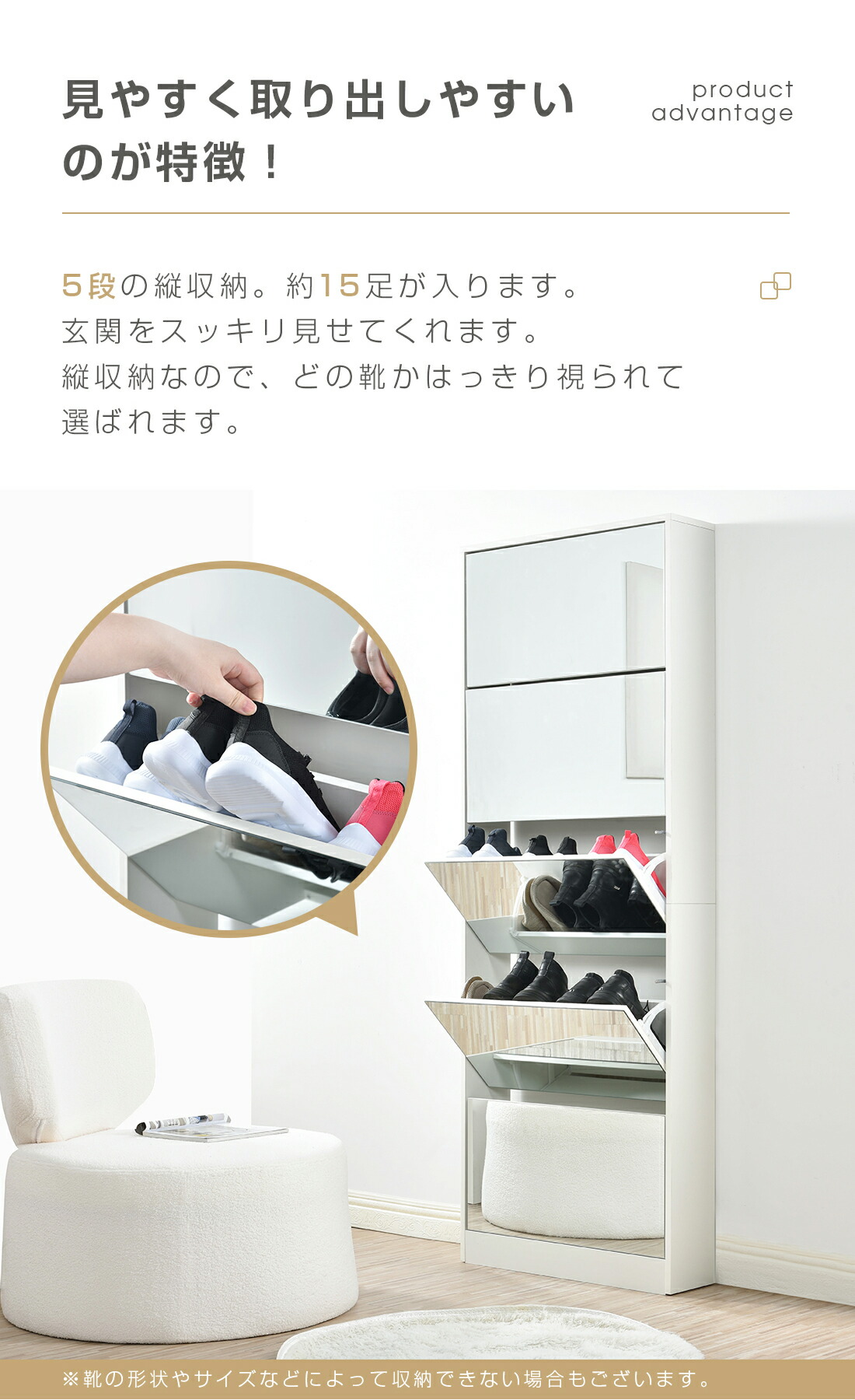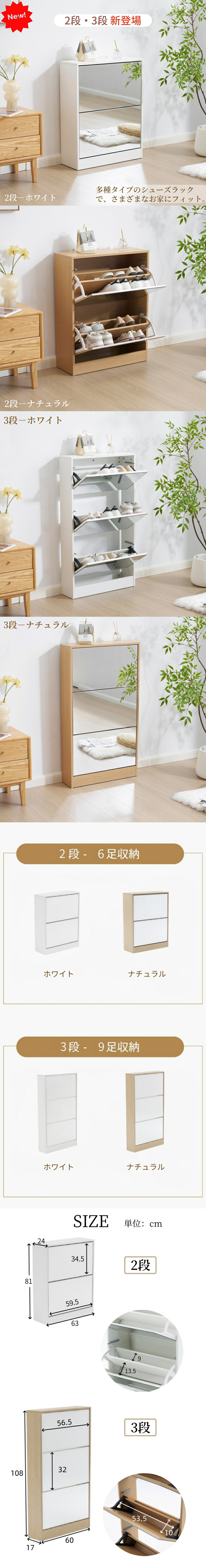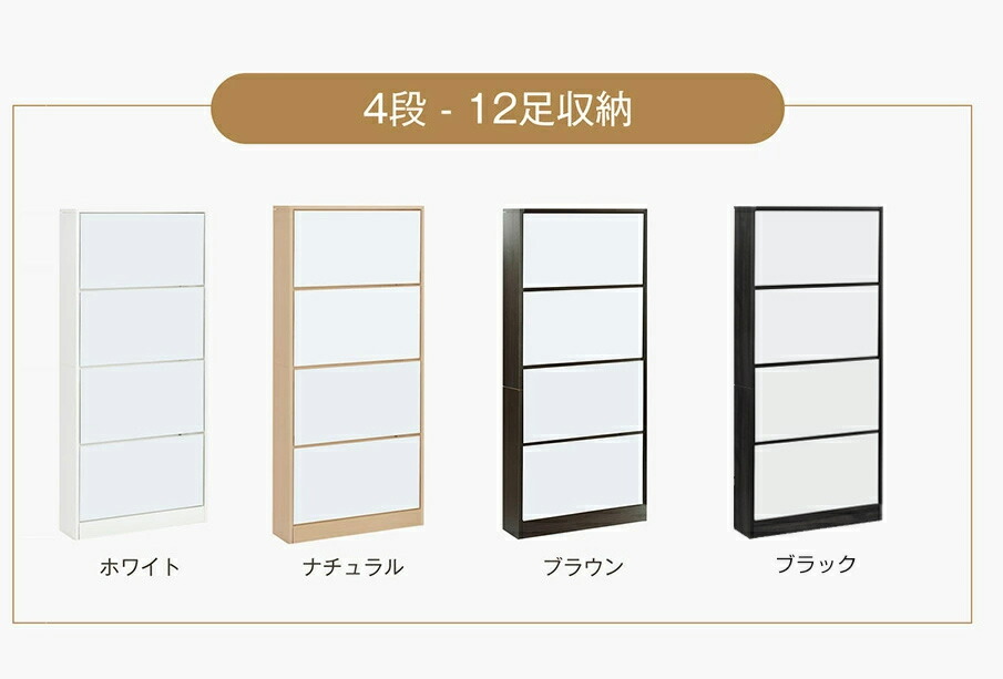 シューズラック スリム シューズボック 2段‐6足収納 3段‐9足収納 4段‐12足収納 5段‐15足収納 ホワイト ブラウン ナチュラル ブラック