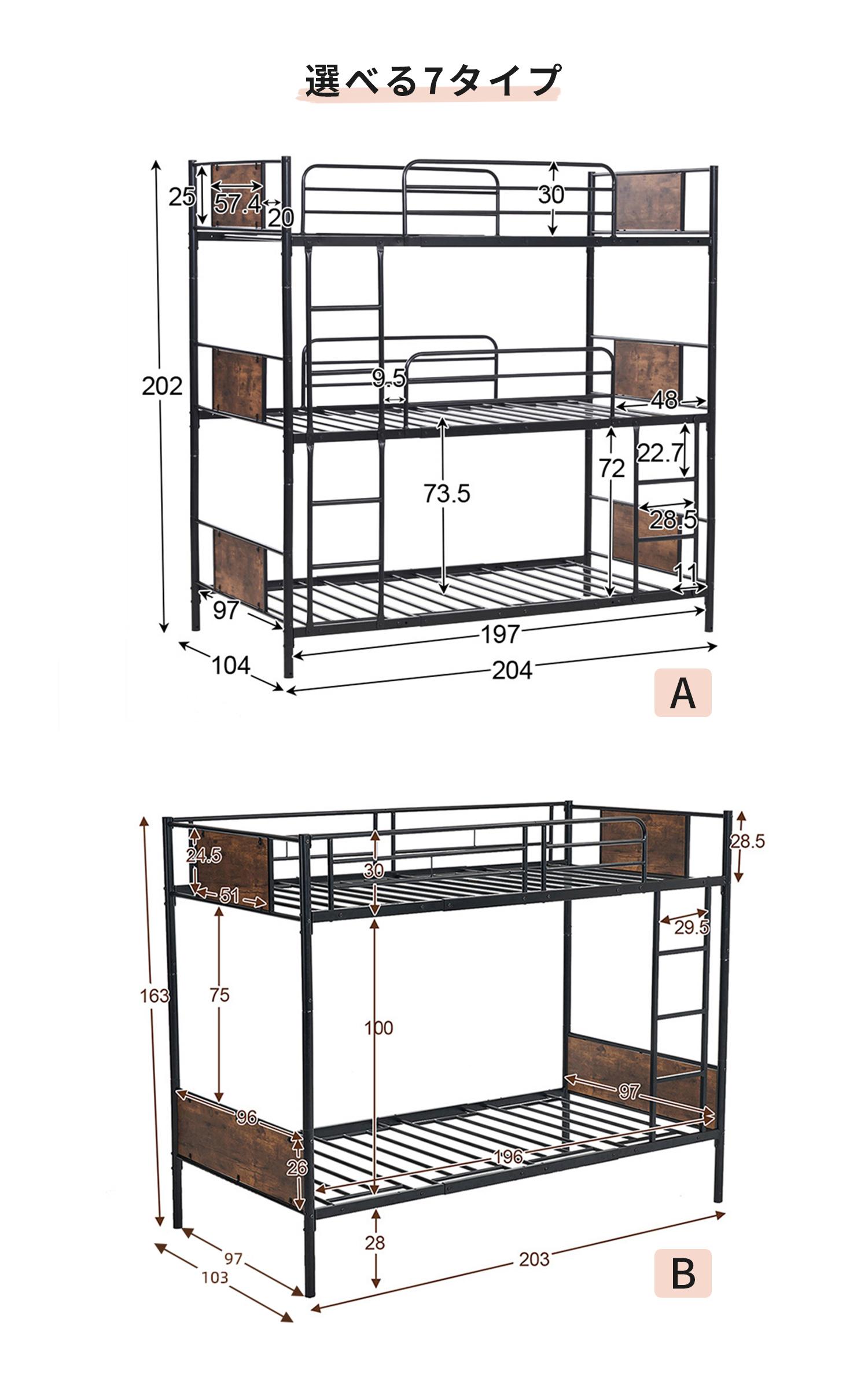 三段ベッド 子供 パイプ 大人用 ベッ ブラック ホワイト タイプA タイプB+シングルベッド タイプC+シングルベッド タイプD+シングルベッド タイプF+シングルベッド タイプG+シングルベッド