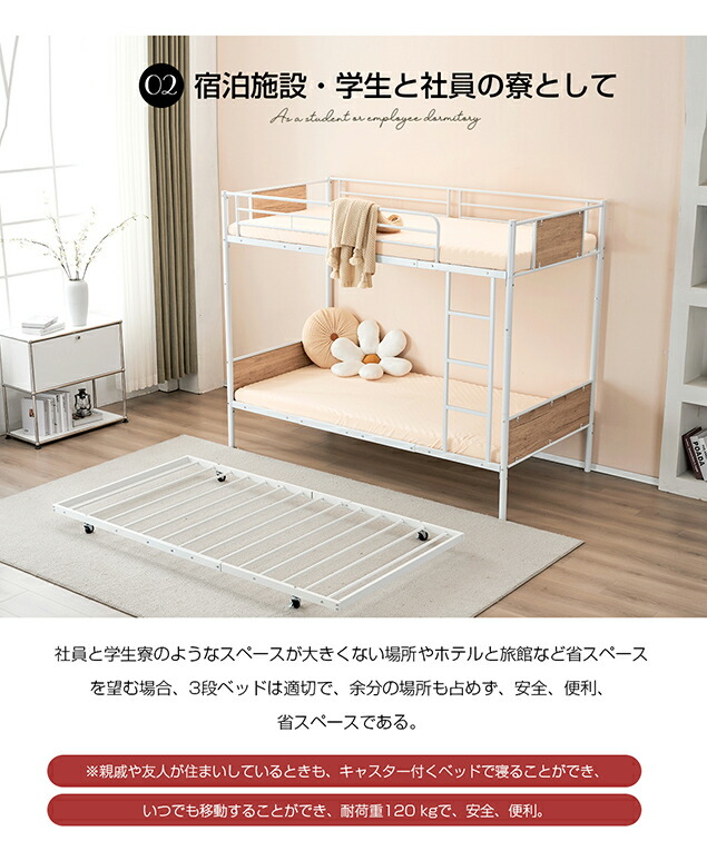 三段ベッド 二段ベッド シングルベッド 2段ベッド 3段ベッド ホワイト ブラック