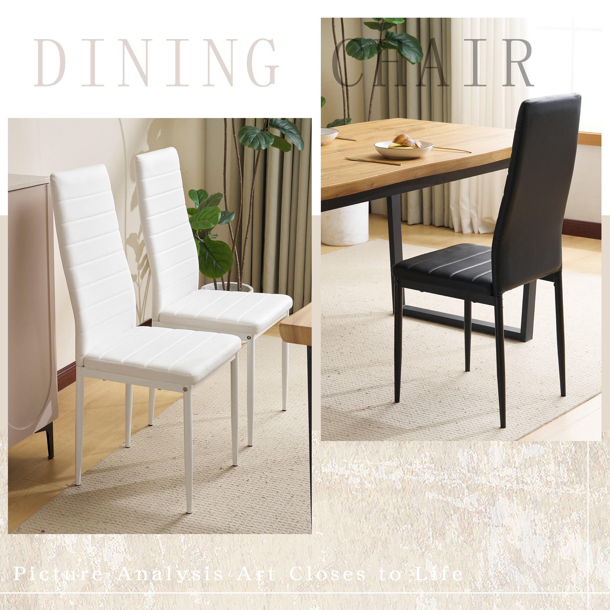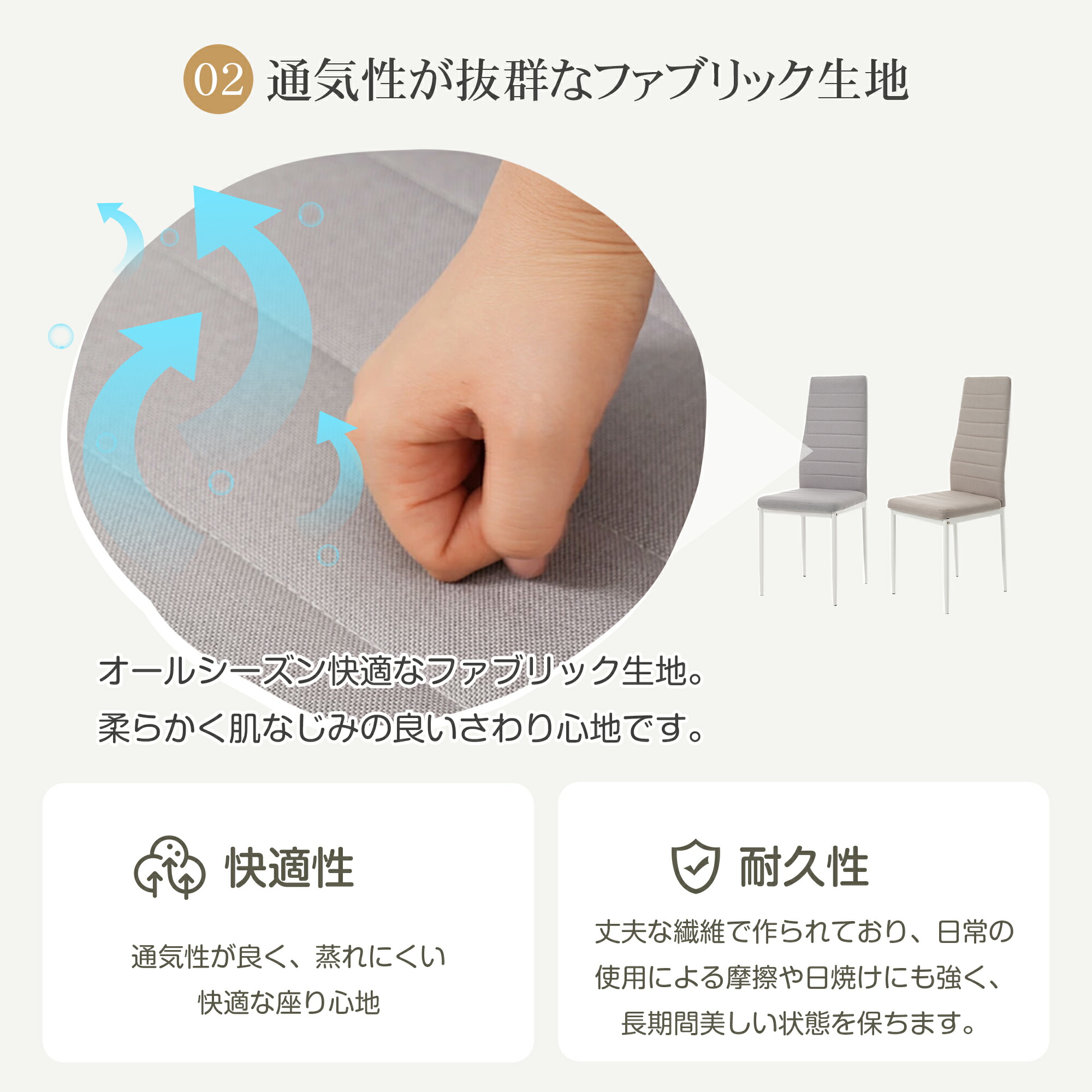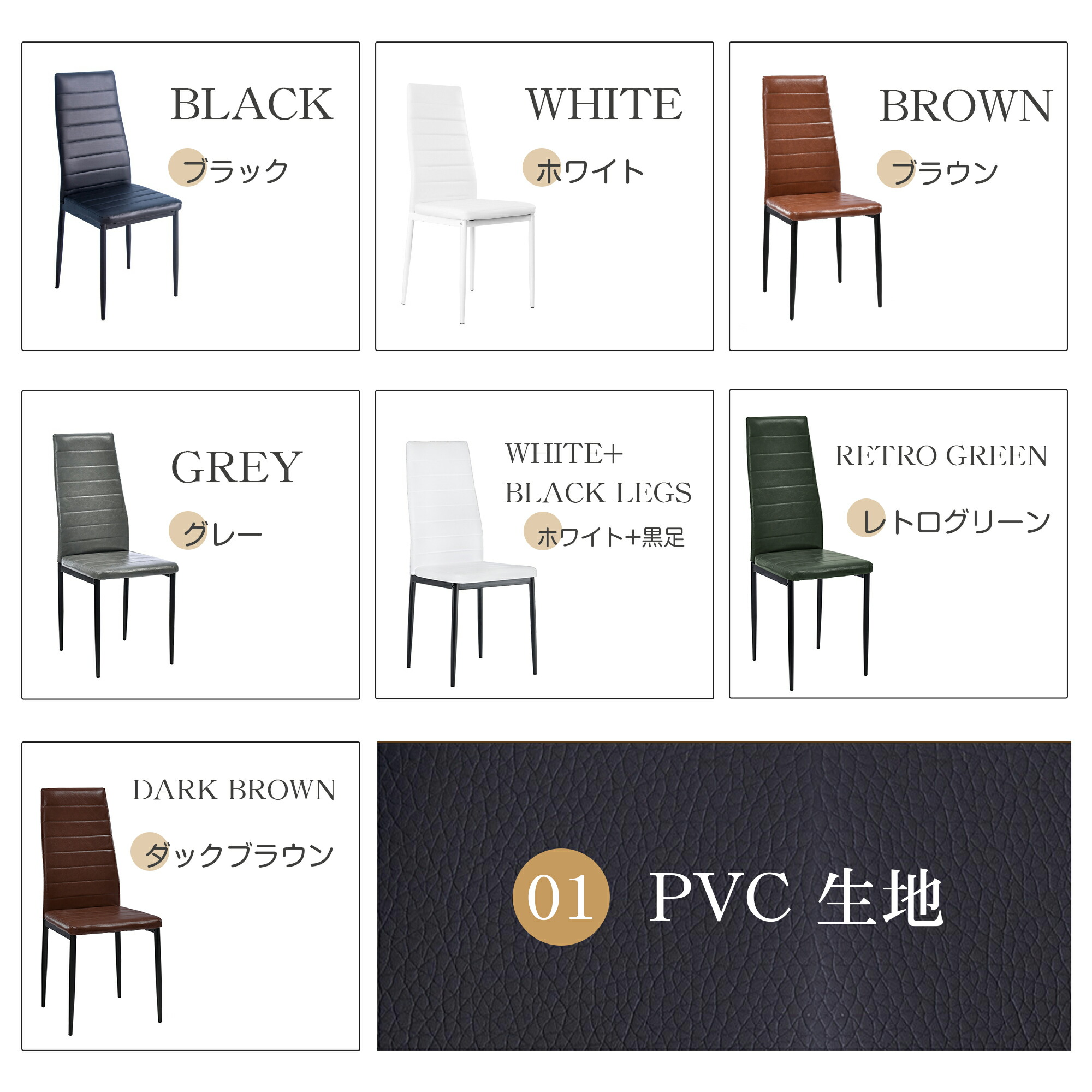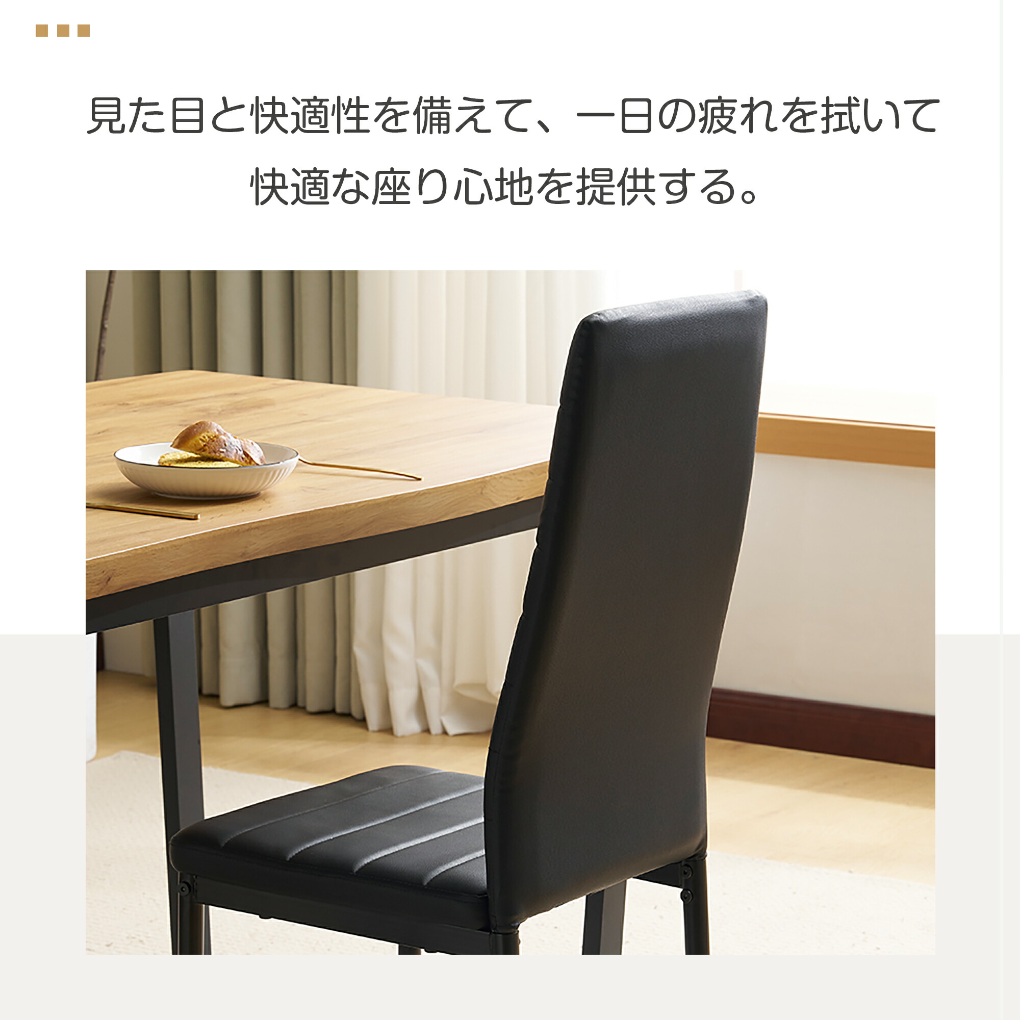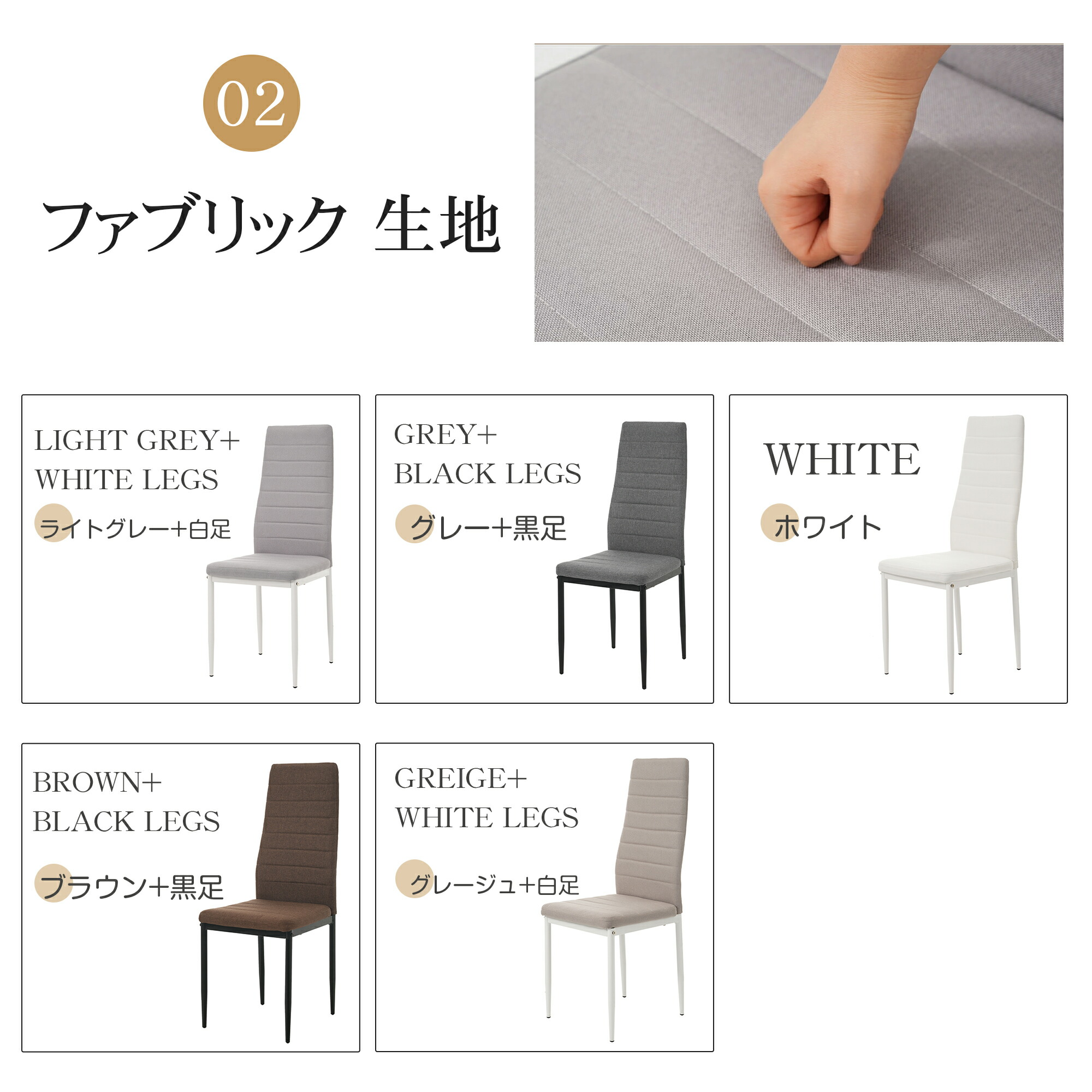 4脚セットダイニングチェア 4脚 椅子 PU生地座面 ファブリック生地座面