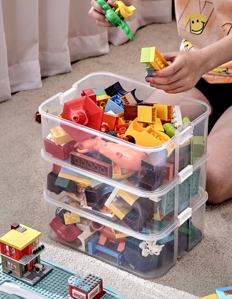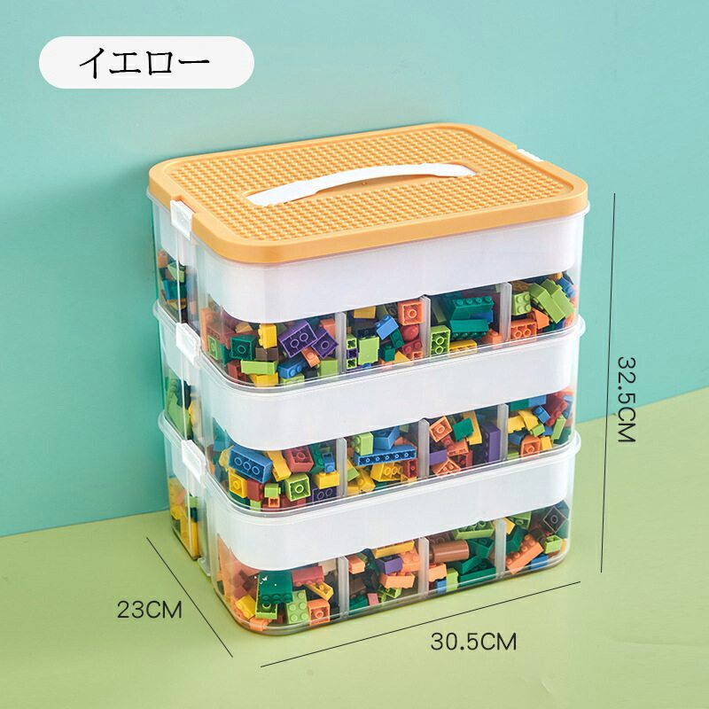 ブロック収納ボックス 収納 ケース お グリーン1層式 グリーン2層式 グリーン3層式 イエロー1層式 イエロー2層式 イエロー3層式