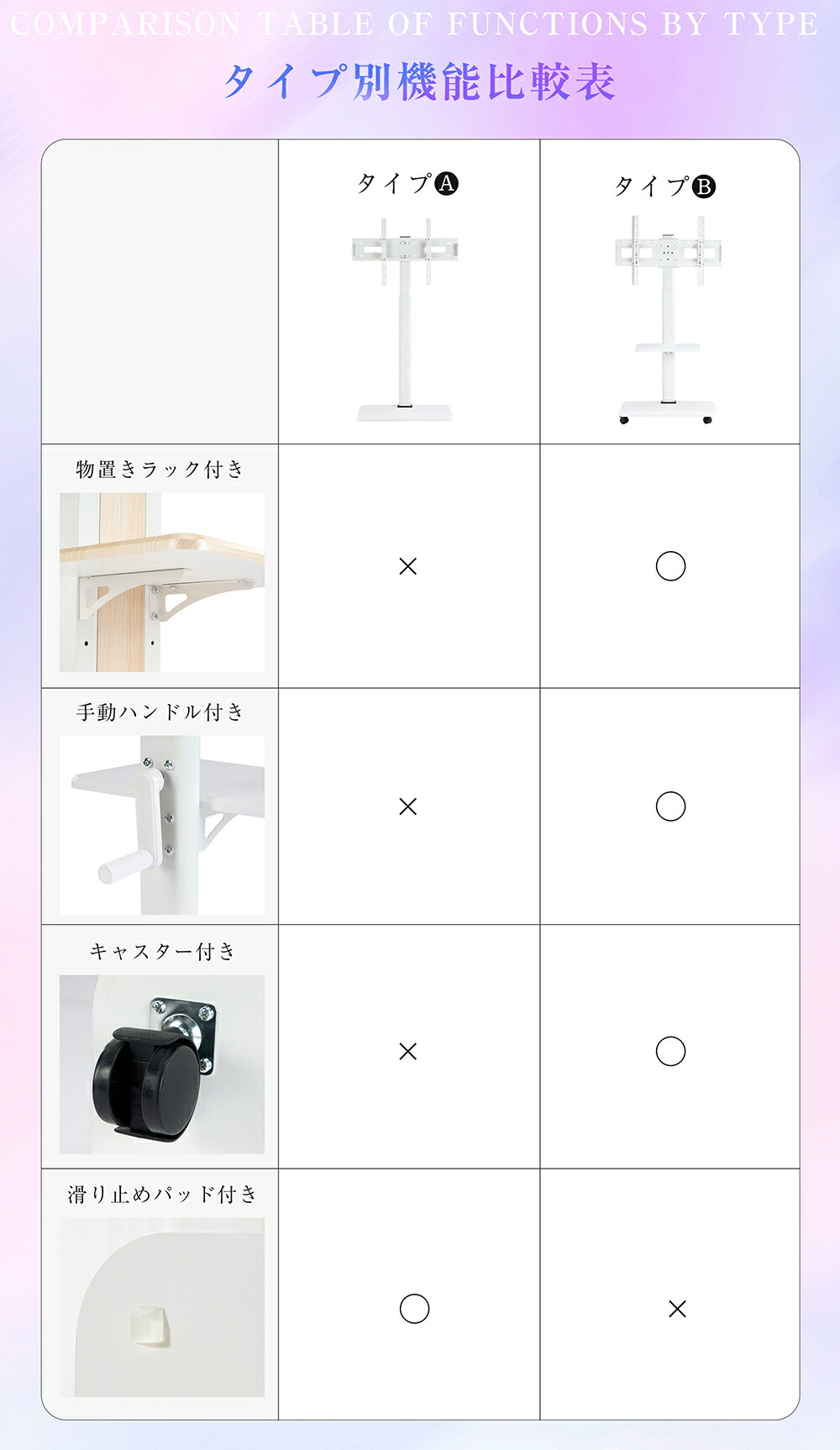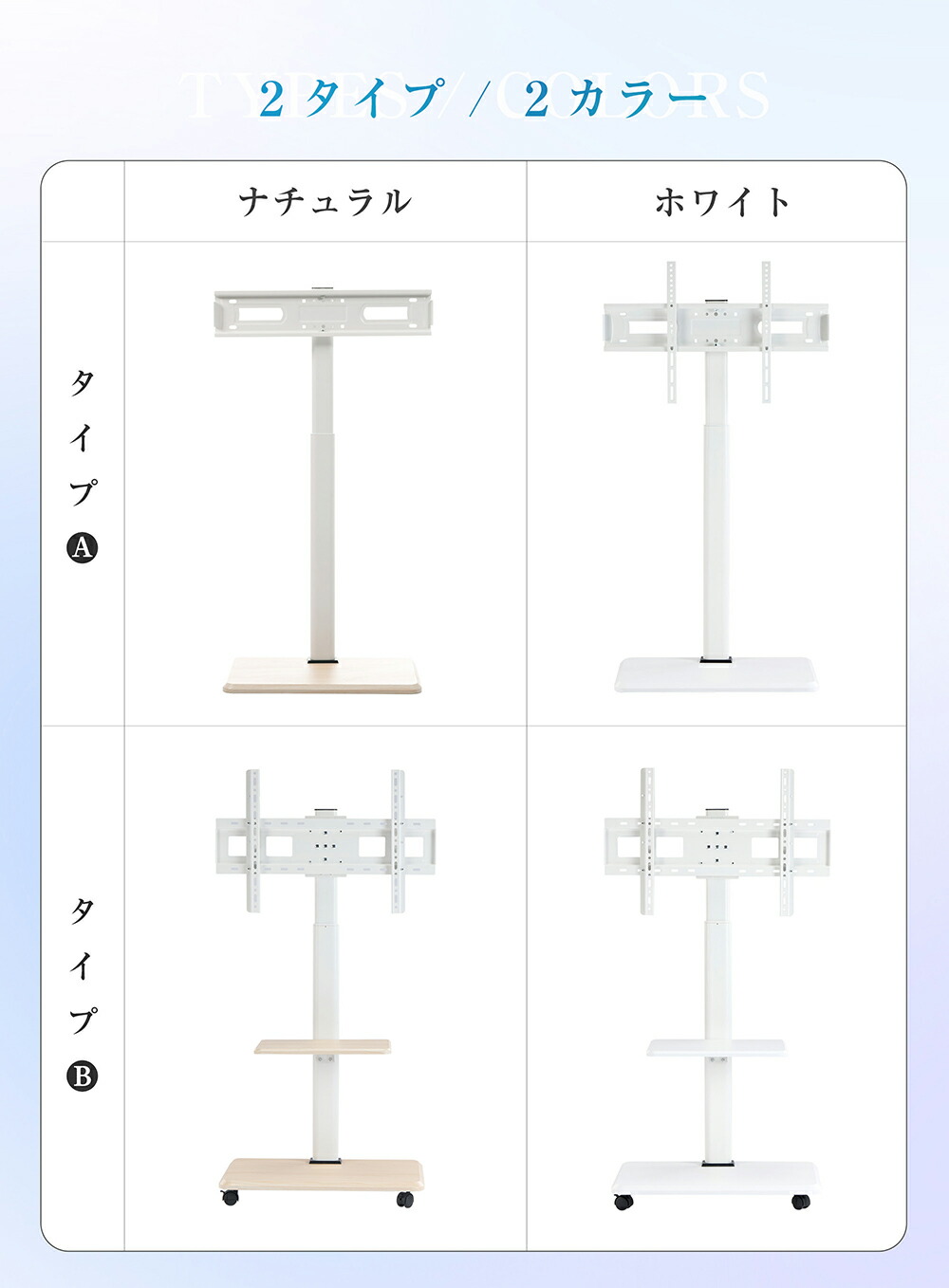 テレビスタンド キャスター付き 壁寄せ タイプA タイプB ナチュラル ホワイト