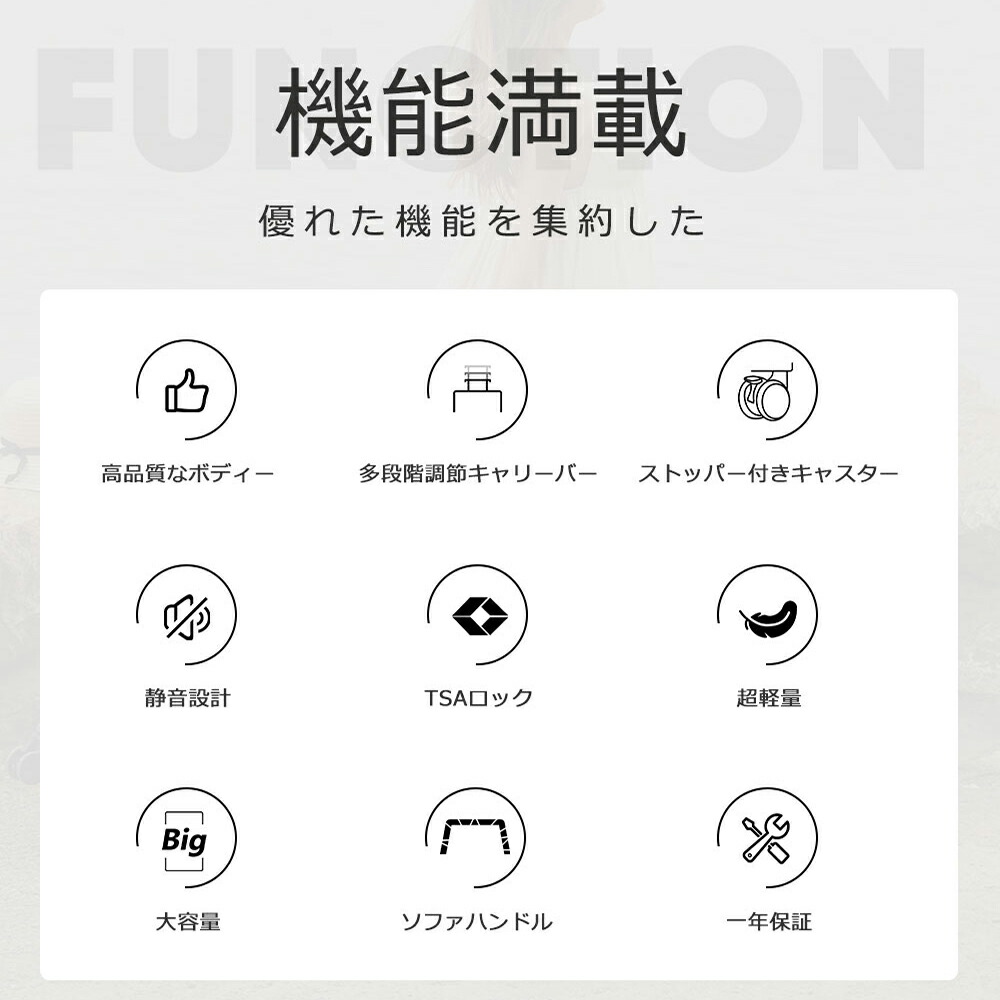 スーツケース キャリーケース キャリーバッグ S M L ストッパー付き 大容量 軽量 かわいい 軽い おしゃれ ダブルキャスター2日 3日 1年間保証 ファスナー suitcase TANO 超軽量