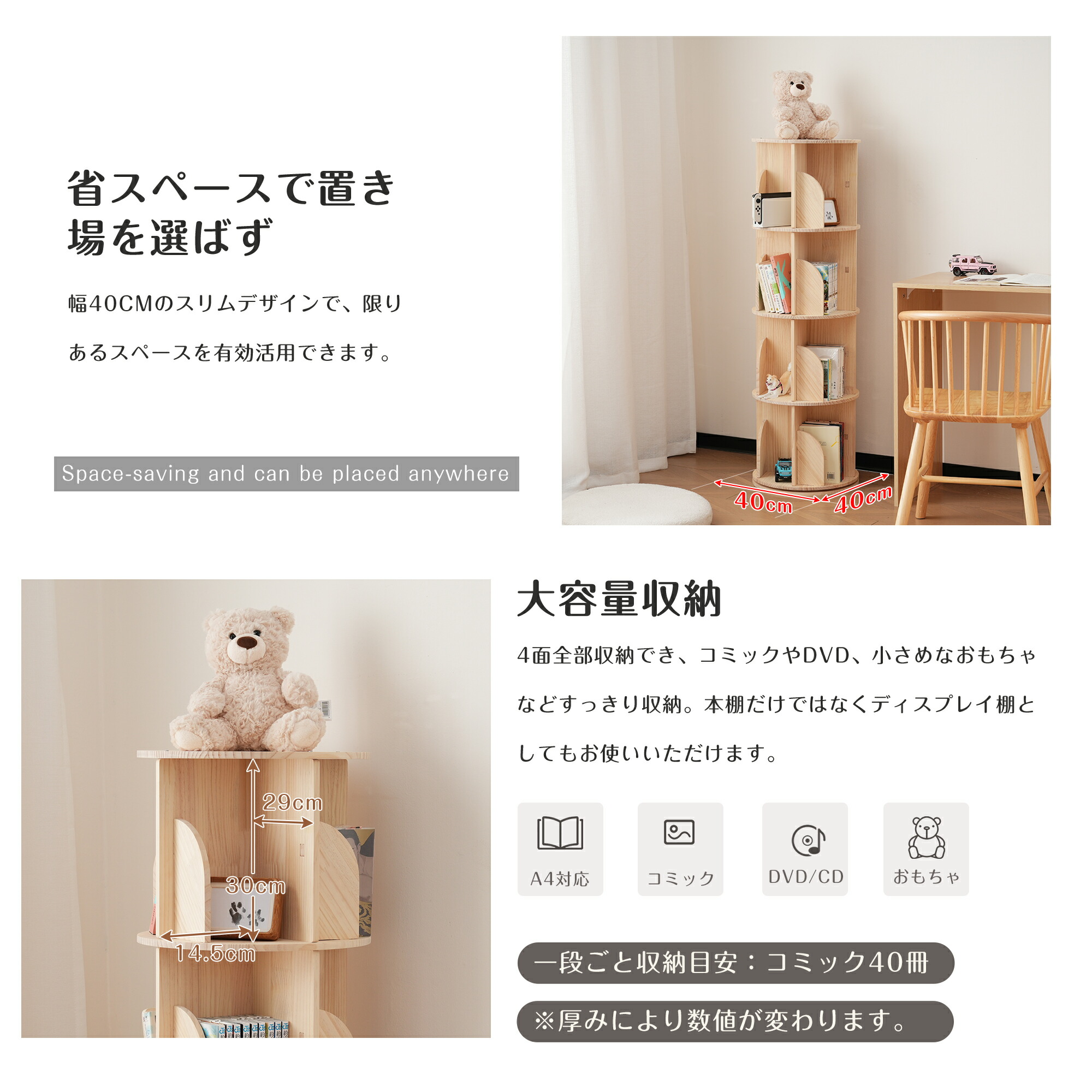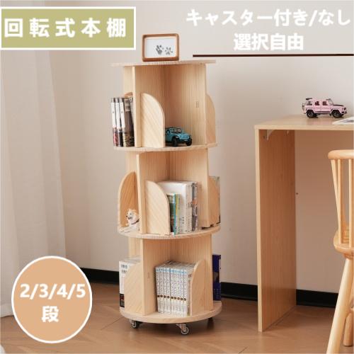 無垢材 回転式本棚 飾り棚 絵本棚 3 回転盤 タイプ キャスター付き タイプ マルチハイト 2段 3段 4段 5段