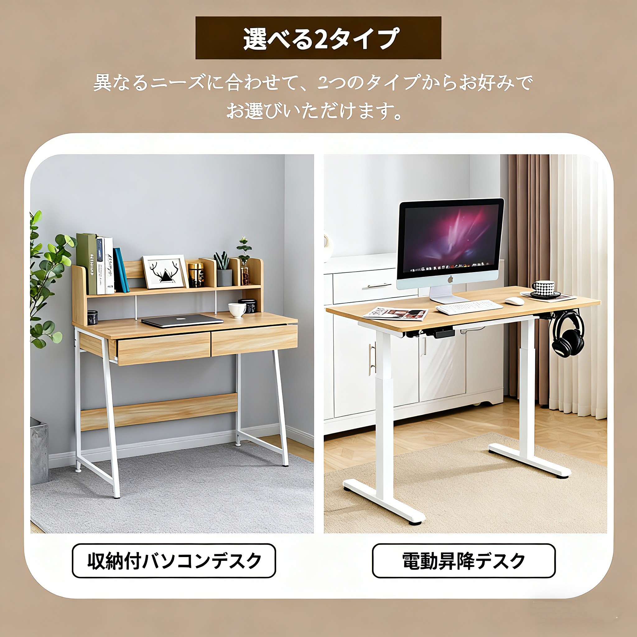 パソコンデスク 引き出し付き 収納台 収納付パソコンデスク 電動昇降デスク/100cm 電動昇降デスク/120cm 電動昇降デスク/140cm ナチュラル ダークブラウン ホワイト ブラック グレー