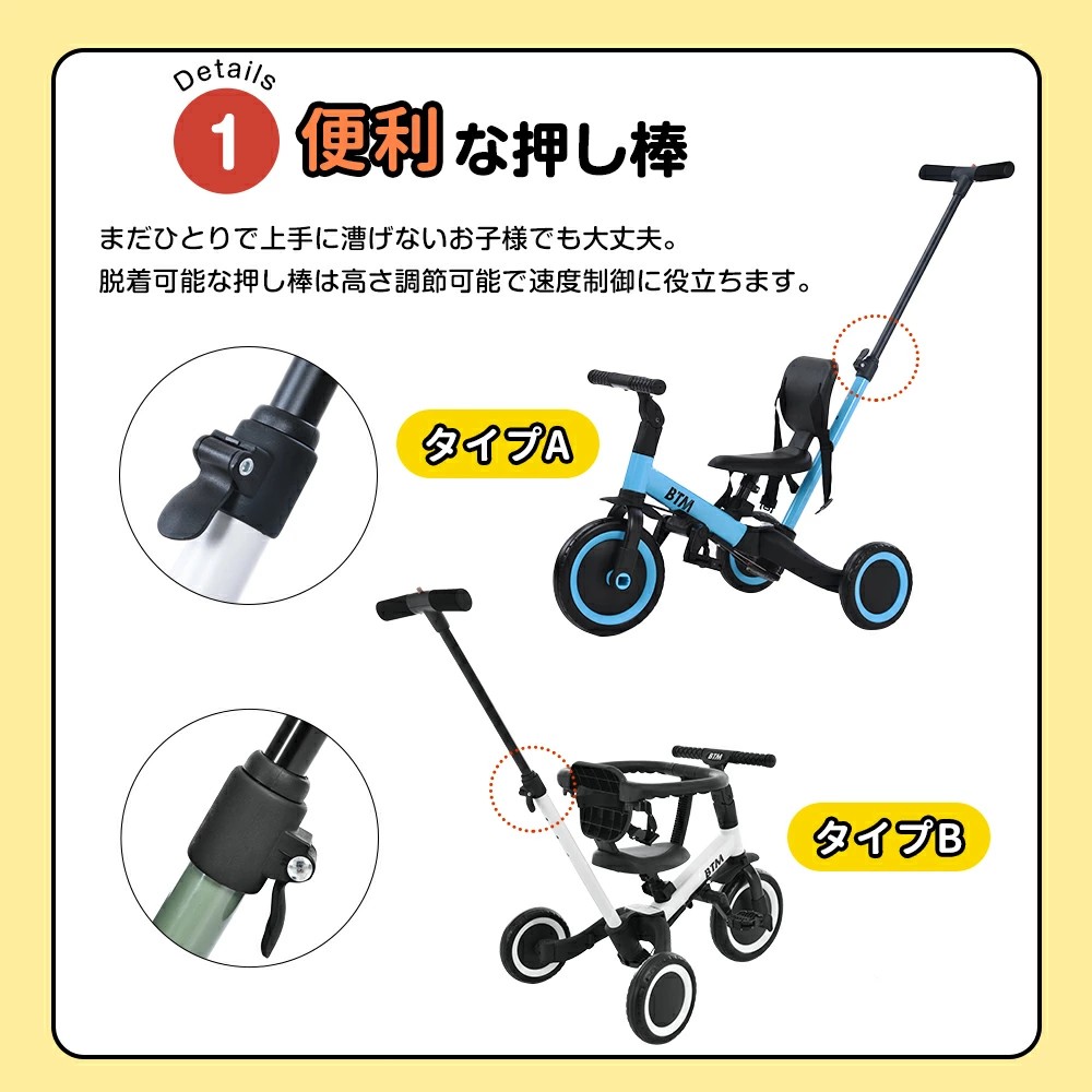 子供用三輪車 4in1 自転車 子供用 オリジナル 押し棒付き キックボードおもちゃ 乗用玩具 三輪車 安全バー付き